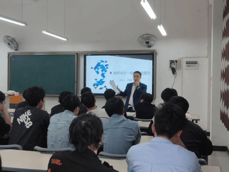 活动初始,卢伯年老师为同学们详细解读了简历的重要性、制作原则等。他强调一份好的简历不仅要具备清晰的结构、简洁的排版,还要突出个人的特点和优势。