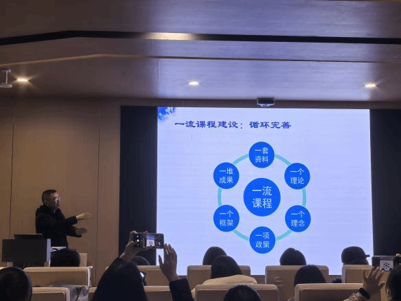 在讲座中,魏教授以自己的课程《博弈论》为切入点,细致剖析了构建卓越课程的精髓所在。他指出,教学不应仅仅停留于知识的传授,而应借鉴科研的严谨与深度,要以科研的方式做教学。为此,他提出了一个包含资料搜集、理论构建、理念创新、政策解读、框架搭建及成果评估在内的六维循环体系,强调这六个方面需相互支撑、循环迭代,共同推动课程质量的持续提升,形成一个完整且高效的闭环系统。