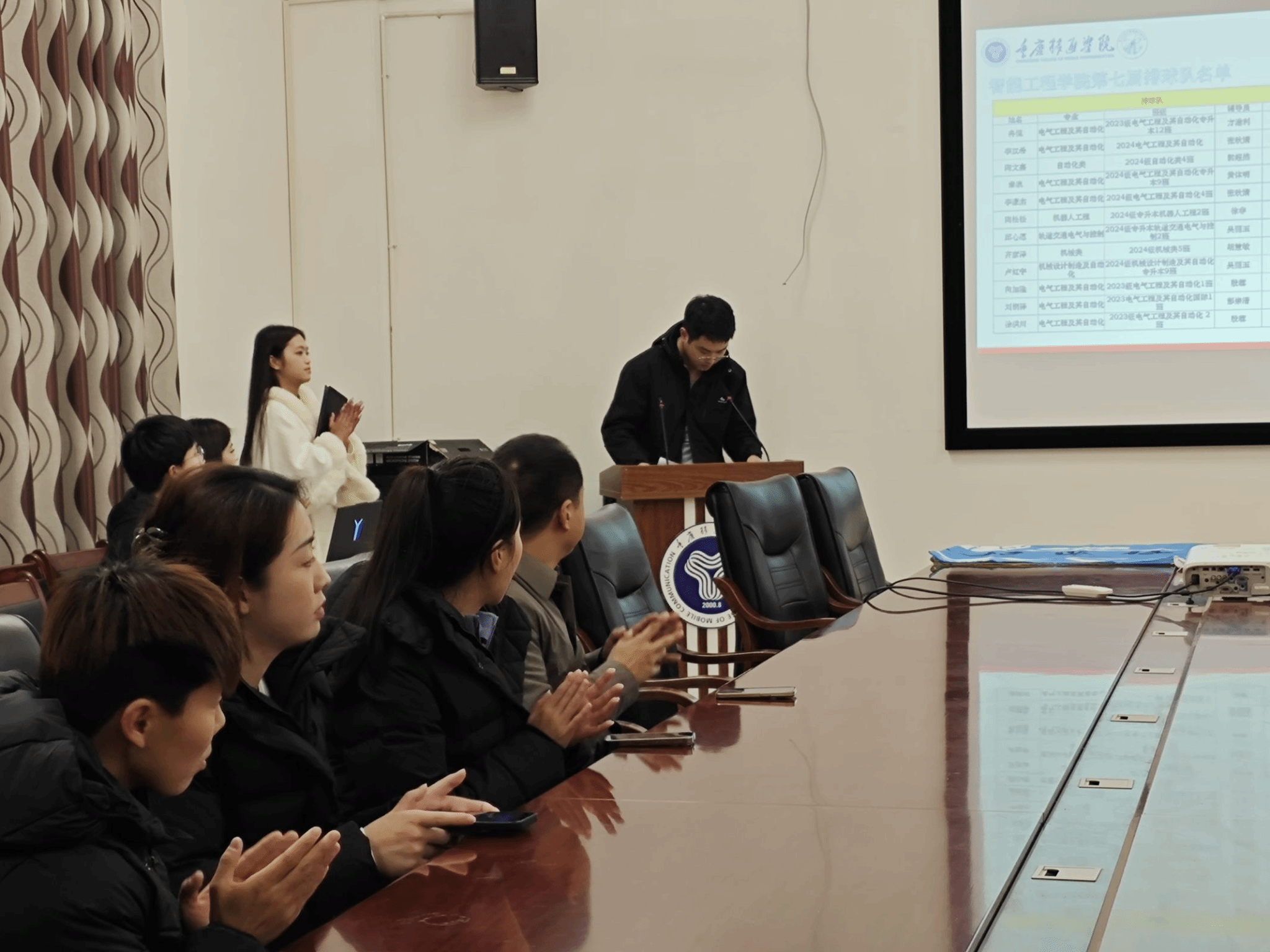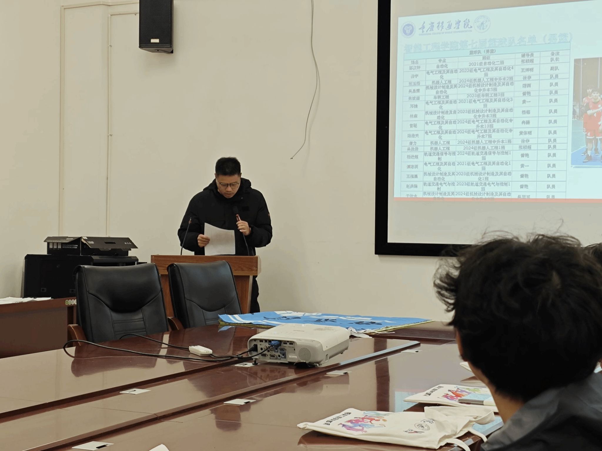 2024年12月4日,智能工程学院第七届院队成立大会于梅若207会议室隆重举行。智能工程学院学工副院长祝玮老师、团总支书记张颖超老师、校男子铁人三项队教练李游老师、足球队指导教练江晓羽老师、篮球队指导教练曾佳老师、排球队指导教练李雅琪老师及全体队员齐聚一堂,共同见证这一重要时刻。