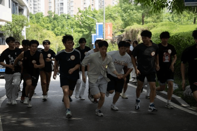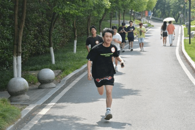 随着一声哨响,比赛正式开始。参赛选手们沿着校园内预先设定好的路线进行环跑,在炎热的太阳下奋勇争先,被炙热的阳光笼罩着,更彰显了参赛选手们的青春与热血。选手们奋力奔跑、积极思考、认真作答,凸显了较强的团队协作、扎实的知识储备和良好的身体素质。