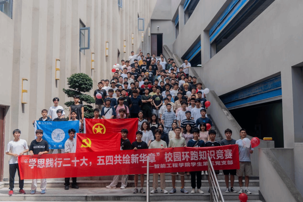本次活动邀请到智能工程学院学生第三党支部书记殷蓉,智能工程学院团总支书记张颖超,智能工程学院辅导员杨铭、方港利、邵燕丽老师到场参与。采用理论与实践有机结合的方式,通过迎国旗唱国歌、党的二十大理论学习、团员代表分享、校园环跑等形式展开了一场活力四射、朝气蓬勃的深入学习并掌握党的二十大精神,赓续五四精神的校园环跑知识竞赛,旨在通过“党建引领+团建赋能”的形式,蹚出助力高质量发展的“青”路子。