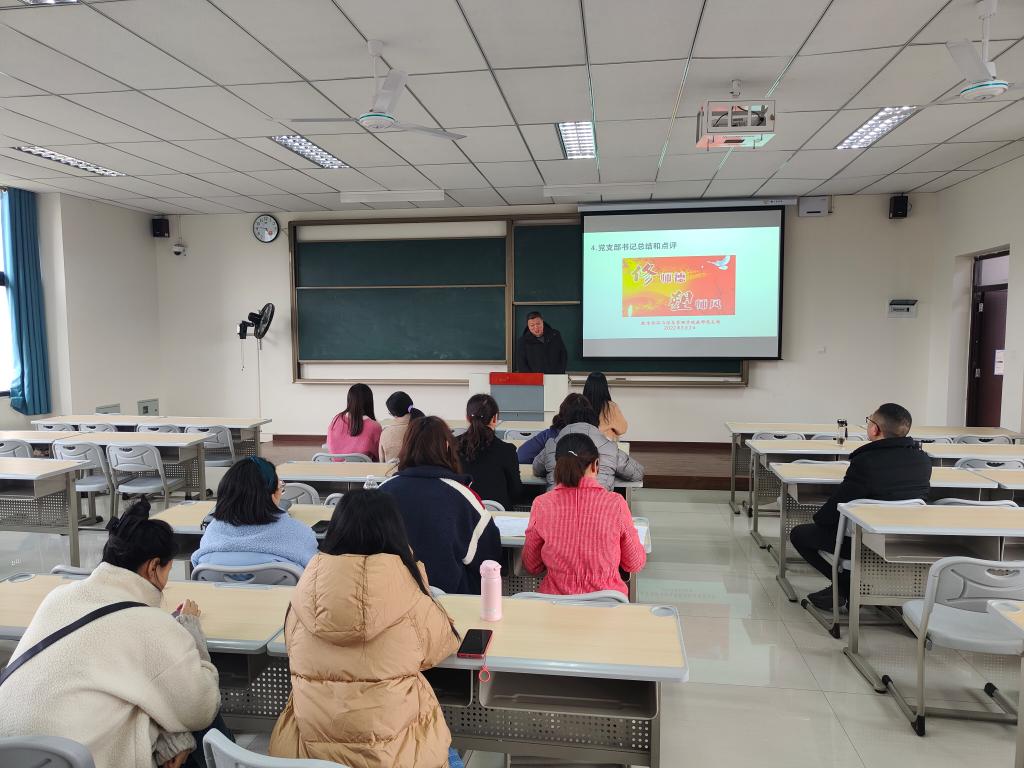 会议最后,党总支书记潘显兵同志进行了总结发言。学院院长潘显兵同志提出修师德、塑师风理念,希望教师支部党员老师积极发挥“攻坚克难”奋斗精神,继续为学院专业建设和立德树人育人工作“撸起袖子加油干”,同时强调学术上以理服人,工作中以诚对人,当好学生健康成长的指导者与引路人。