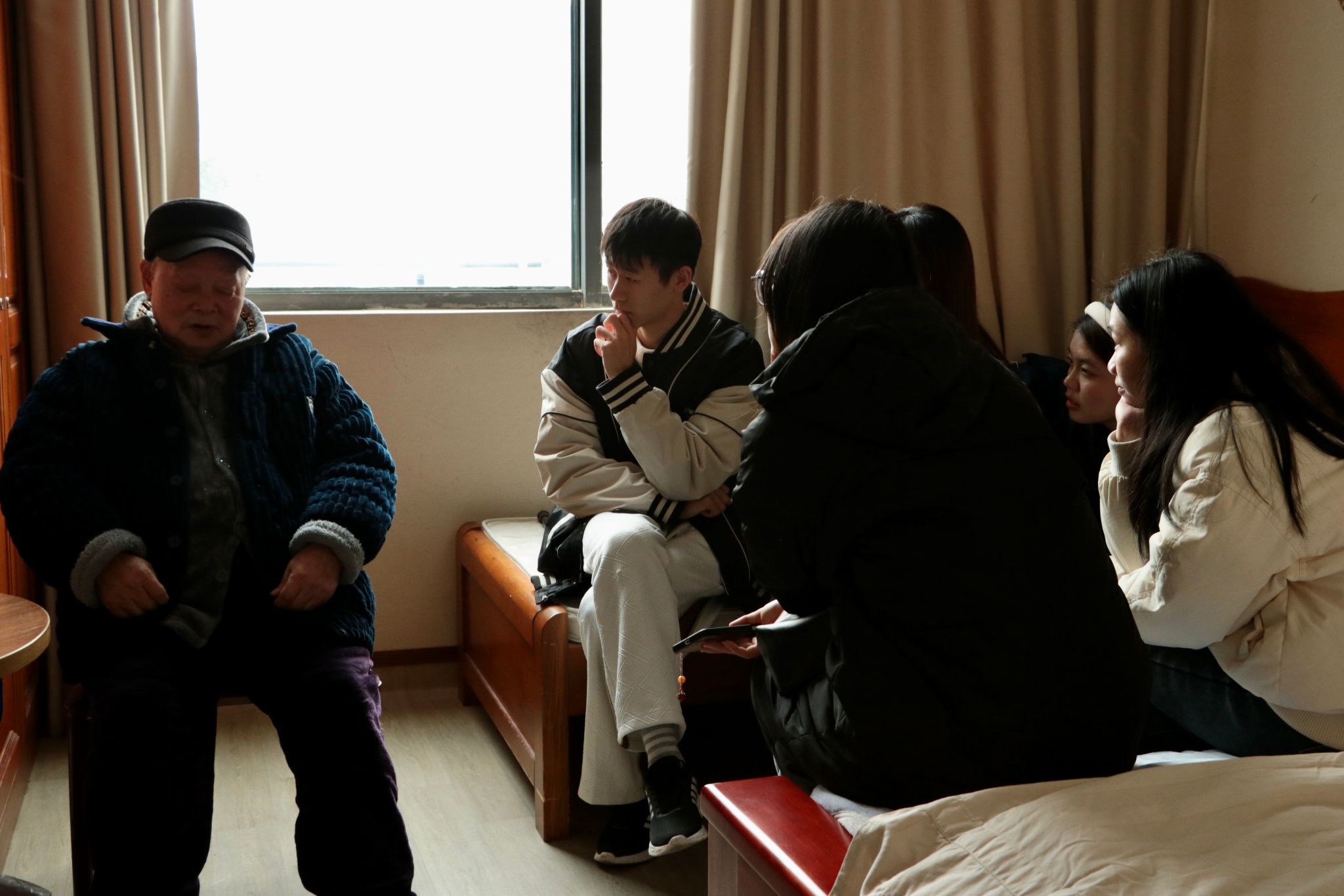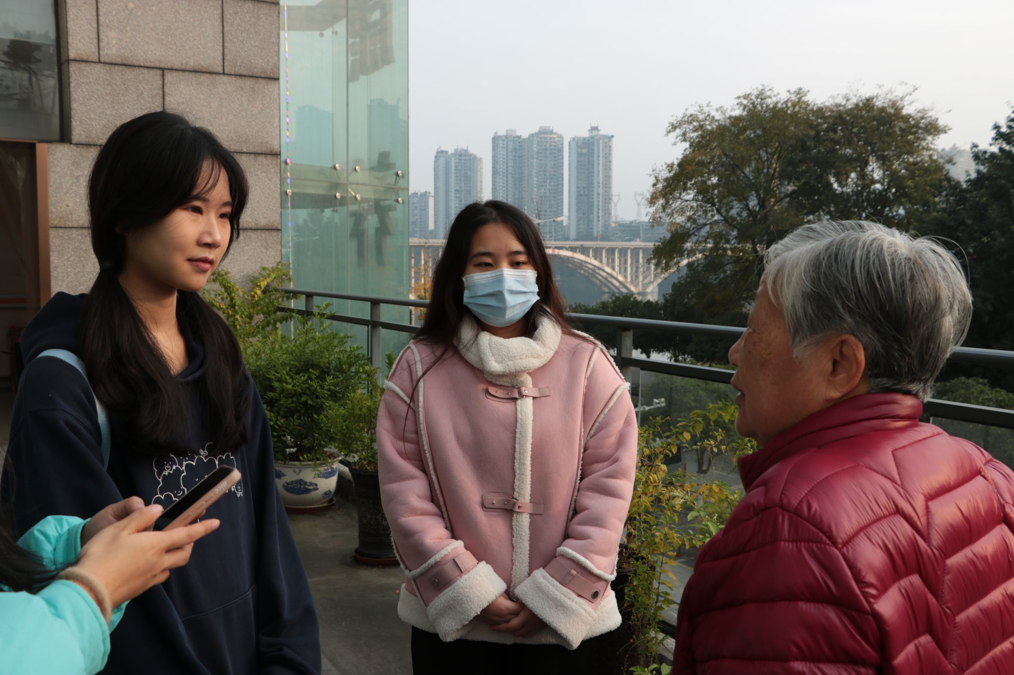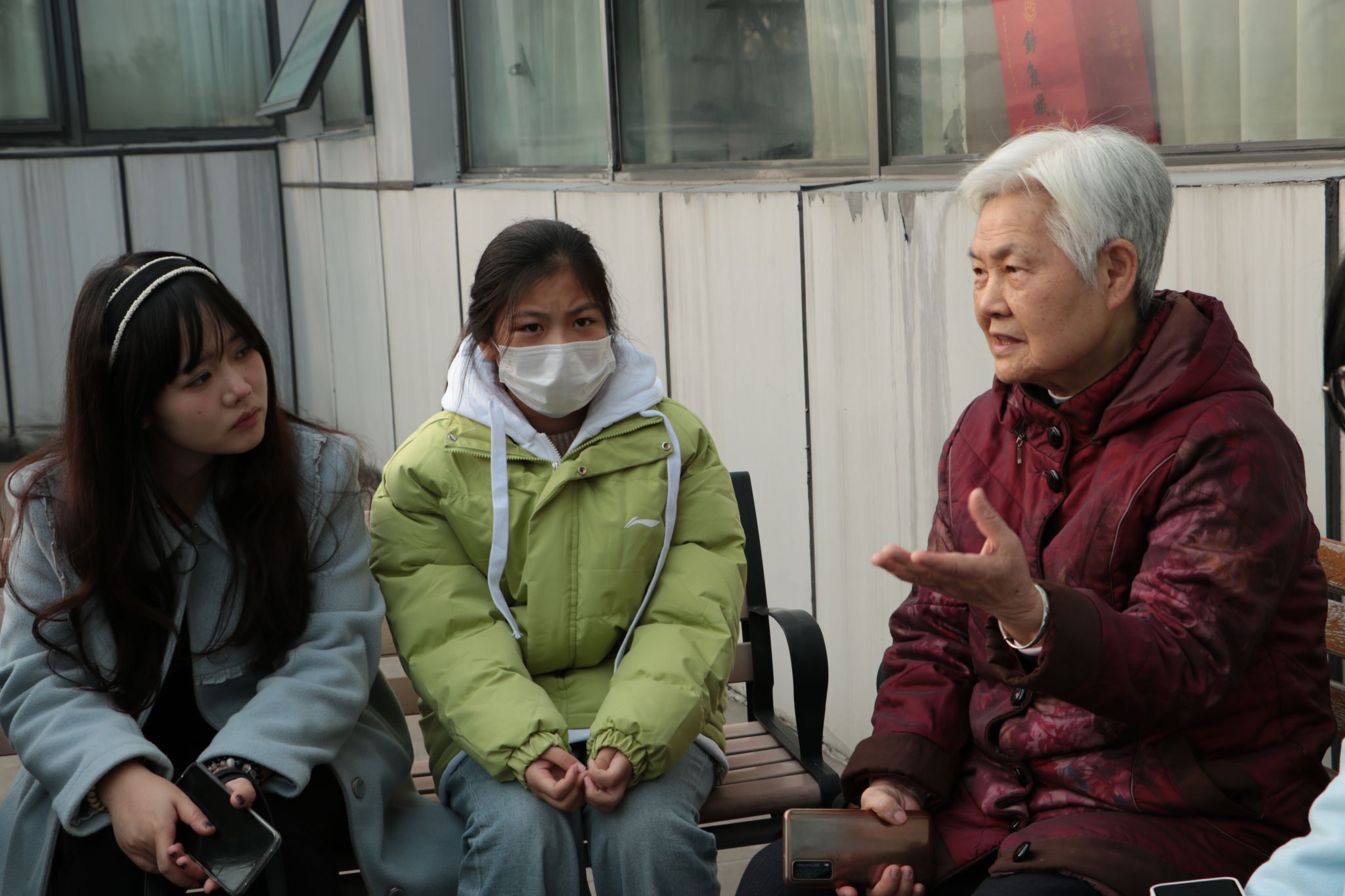 人生易老,夕阳胜春光。养老中心负责人王瑞老师将同学们带领到各个老人房间,简单地介绍了老人们之前的工作和年纪。岁月蹉跎,老人们身体依旧坚朗,神采奕奕,面对同学们的采访提问都很健谈,在谈论起自己的人生经历更是滔滔不绝。历经八九旬时光,同学们无法再次踏入老人们的旅程,重现他们的步伐,但可以从言语中进入他们的视角,依稀看到那段回忆,体验他们看待过去的岁月以及成长的心路历程。