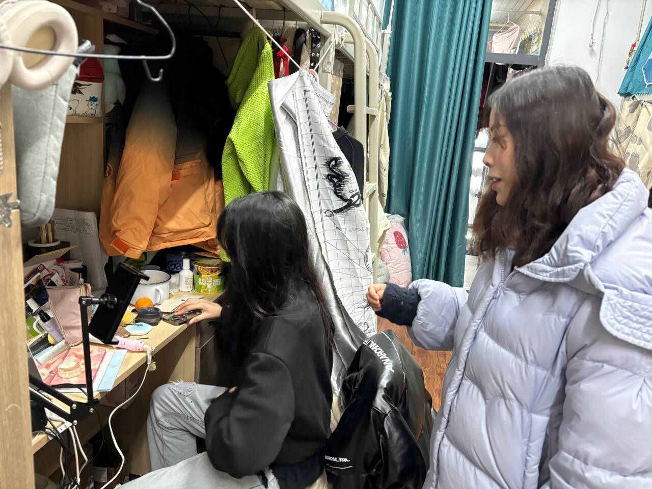 查寝过程中,老师们还针对存在安全隐患的宿舍给予同学们更多建议,包含安全使用电器的注意事项、避免电线交叉、不使用违规电器等方面,有助于提醒同学们注意安全,防范和解决潜在的安全问题。