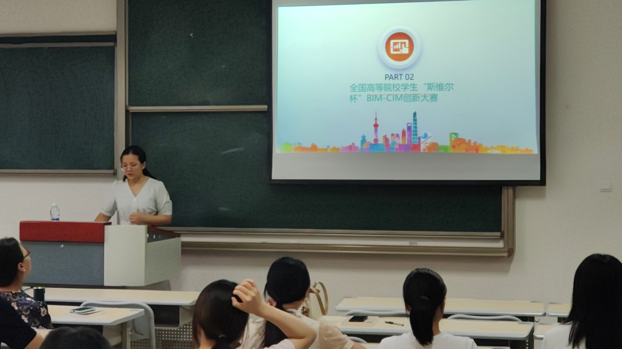 接下来由徐桂霄老师继续为大家分享暑期学习的经验,徐老师于暑期7月份参与了第十五届BIM-CIM技术创新及应用暑期师资培训,对于培训内容中的重要内容给老师们做了分享。首先分享了双碳背景下建筑碳排放计算与管理研究,结合绿色低碳发展背景和国家对于碳排放相关政策,提出了卫生棉要进行建筑碳排放计算的思考,以及如何建筑全生命周期碳排放的计算。随后分享了全国高等院校学生“斯维尔杯”BIM-CIM创新大赛的赛制,分析了个人赛和团队赛各自的特点,并鼓励学生积极参与到比赛中,以赛促学,提高学生实践操作能力。