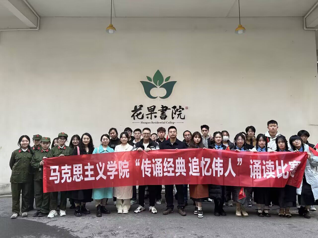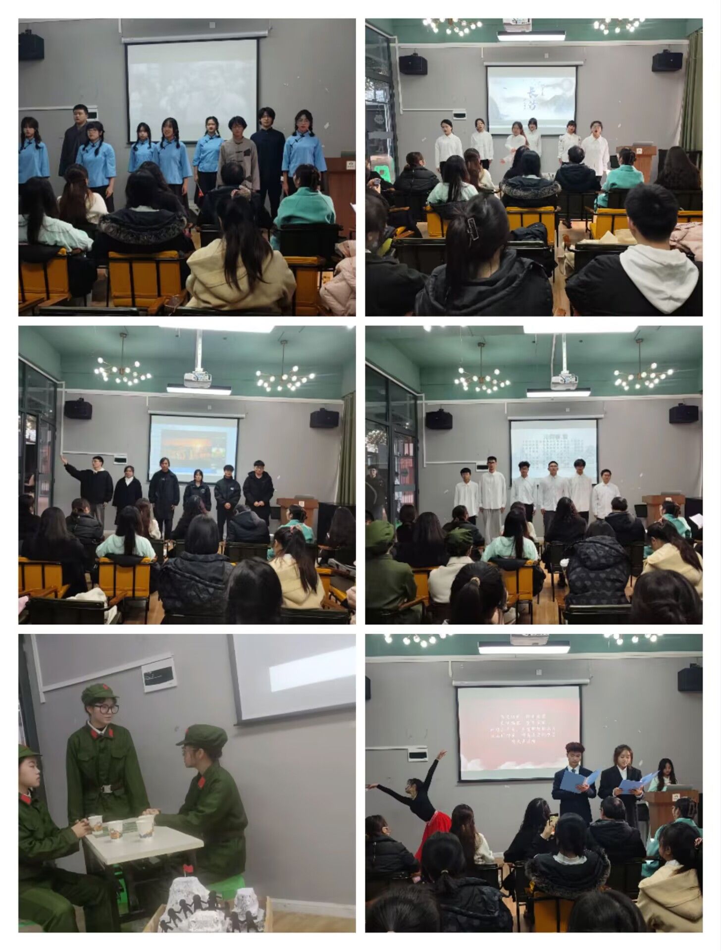 为全面推动新时代党的创新理论进教材进课堂进头脑,深入实施“大思政课”建设工程,坚持不懈用习近平新时代中国特色社会主义思想铸魂育人,切实增强学生对思政课的获得感,引导广大学生正确认识世界和中国发展大势,勇于担当时代责任和历史使命。缅怀一代伟人,追寻红色记忆,传承红色基因,弘扬革命精神。12月6日下午3点,马克思主义学院中国近现代史纲要教研室在花果书院多功能活动室举办了“诵读经典 追忆伟人”比赛决赛。