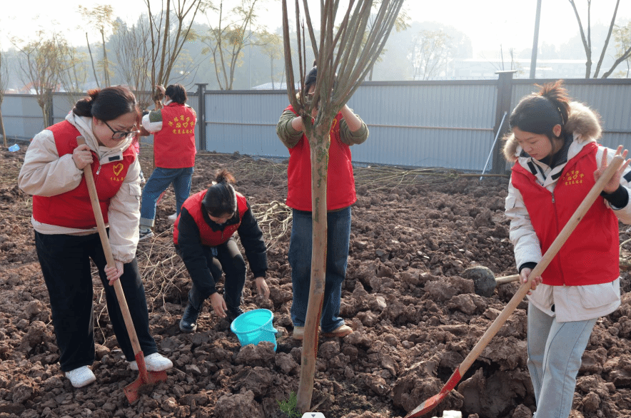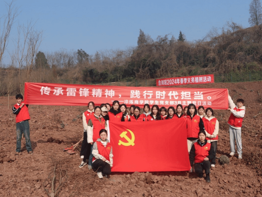 古有“草长莺飞二月天,拂堤杨柳醉春烟”;今有“三月春风处处暖,雷锋精神代代传”。在植树节来临之际,为传承和弘扬雷锋精神,践行“绿色”发展理念,积极响应“植树造林”的号召,2024年3月11日8时,淬炼商学院学生党支部联动合川区妇联及学院青协,共同开展“传承雷锋精神·践行时代担当”3月主题党日活动,深入推进生态文明建设,共同构筑绿色生态保障。