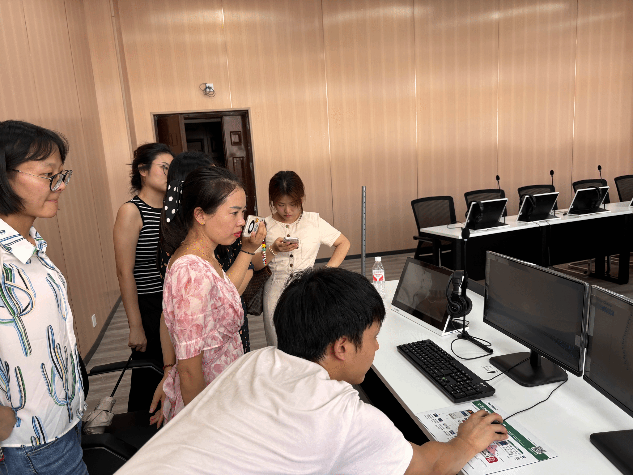 9月18日下午三点,位于重庆移通学院合川校区的二实验楼505-506教室,热闹非凡,一场专业的培训活动正在进行。参与此次培训的人员包括来自外国语学院英语专业的牟娜、左黎妮、蒙佳利老师,德语专业的黎文雯、齐菲菲和武桐老师,以及负责实验室建设对接的曹阳阳老师。