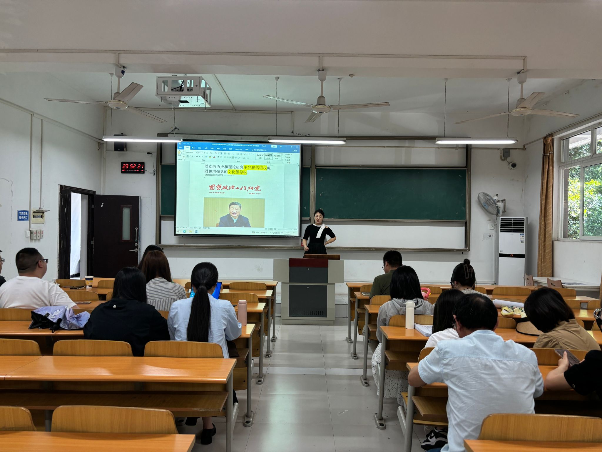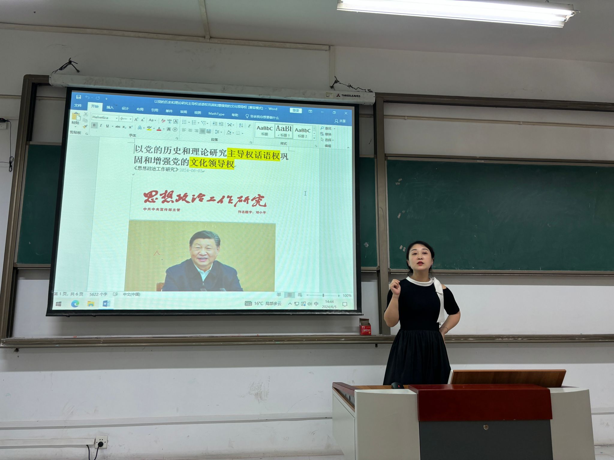 坚持党的文化领导权,是习近平文化思想的一个极为重要的内容、极为鲜明的特色。以习近平文化思想为指导做好党史和文献工作,牢牢掌握党的历史和理论研究主导权话语权,更是高校思政教师开展教学与科研工作的重要准则。为认真学习领会这一思想,6月5日14时30分,马克思主义学院党支部中国近现代史纲要教研室党小组在1210教室召开了专题理论学习会。会议由何林老师组织学习,中国近现代史纲要教研室党小组全体党员参加。