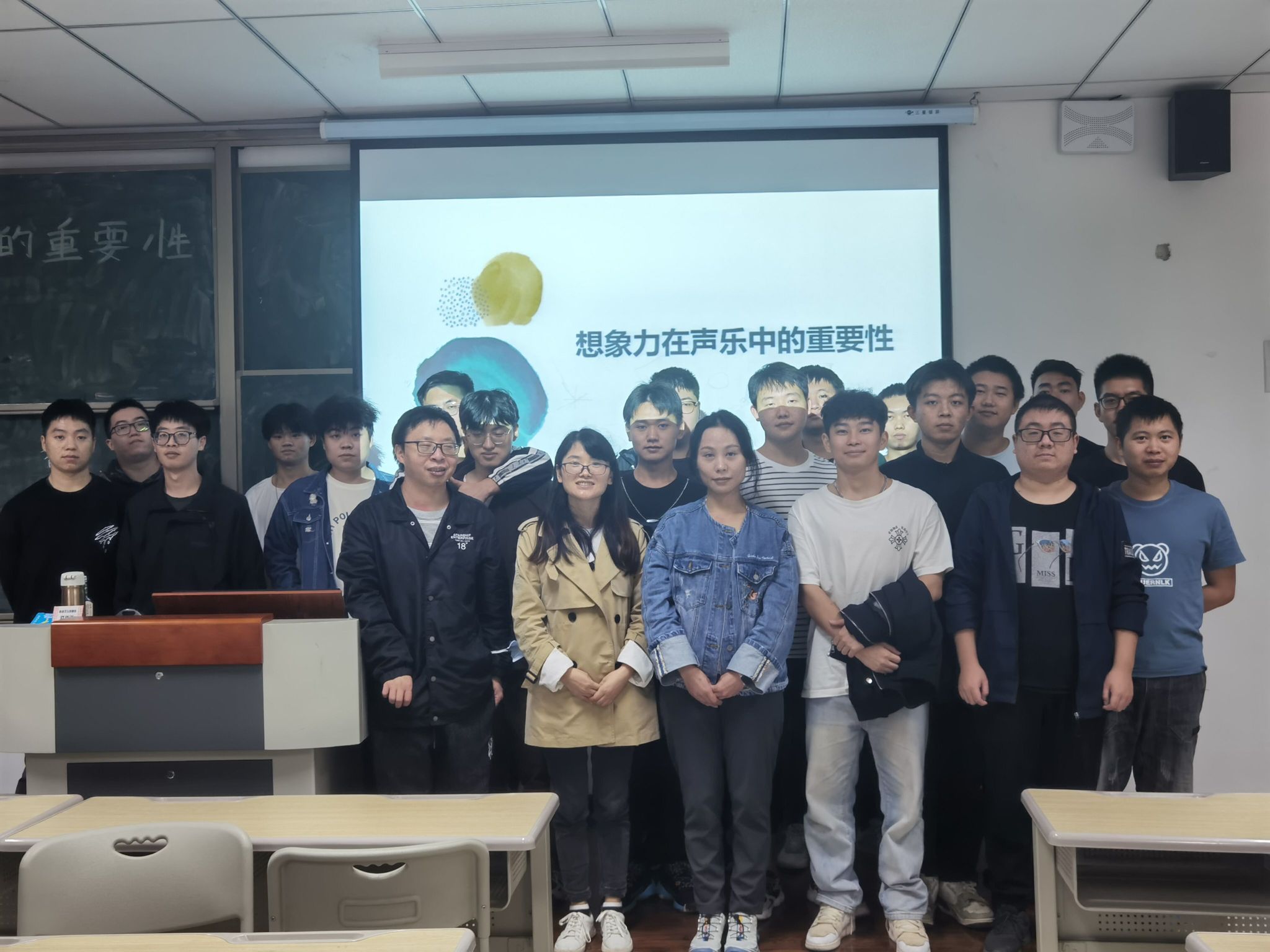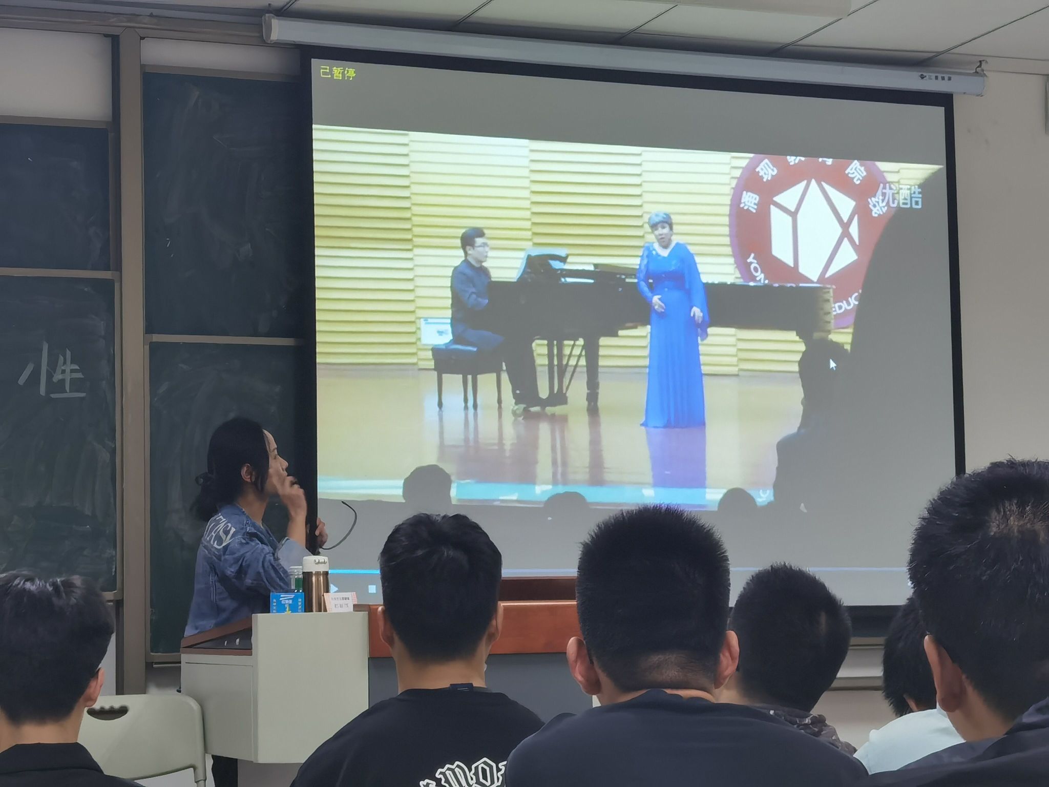 刘慧琴、张爱春、陈明波老师举办了一场别开生面的声乐讲座,从多个方面向学生讲诉音乐艺术的美,其中涵盖了声乐的基础知识、技巧和表现力等方面。通过引起学生的共鸣,走进他们的内心,了解他们的压力,排解他们心中的负面情绪,形成健康的心理,讲座最后在高涨的情绪和热烈的掌声中结束。