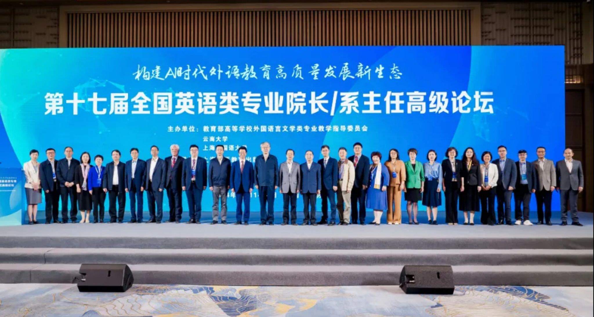 近期,外国语学院院长吴世银受邀参加了在云南大学举办的第十七届全国英语类专业院长/系主任高级论坛,论坛由教育部高等学校外国语言文学类专业教学指导委员会、云南大学、上海外国语大学共同主办,上海外语教育出版社承办。本届高级论坛的主题为“构建AI时代外语教育高质量发展新生态”,来自全国各地的五百余位英语类专业院长/系主任围绕英语专业建设与课程改革、外语教育与教师专业发展、跨文化教育与国际传播能力建设、高质量英专教材与教学、产教融合、高质量人才培养等英语类专业发展的核心议题进行深入探讨。