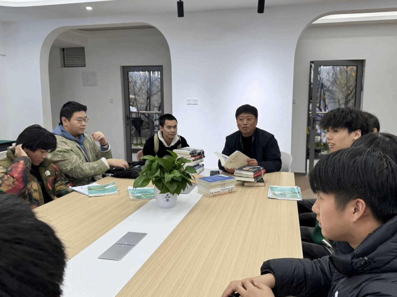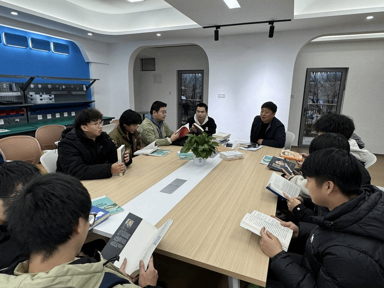 随后,师生们利用智能交通创新工坊丰富的信息产业大咖书籍开展了自由阅读和交流活动。阅读分享会现场,师生围坐,一场场思维盛宴,气氛热烈非凡。