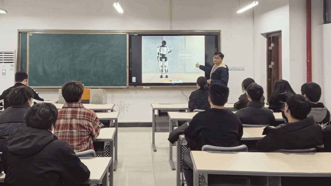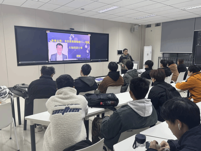 活动中,岳丰老师深入解读了马斯克的创业历程和创新精神,并分享了脑机接口、自动驾驶和人形机器人等前沿行业的发展动态。同学们全神贯注地聆听,并积极参与到讨论中。