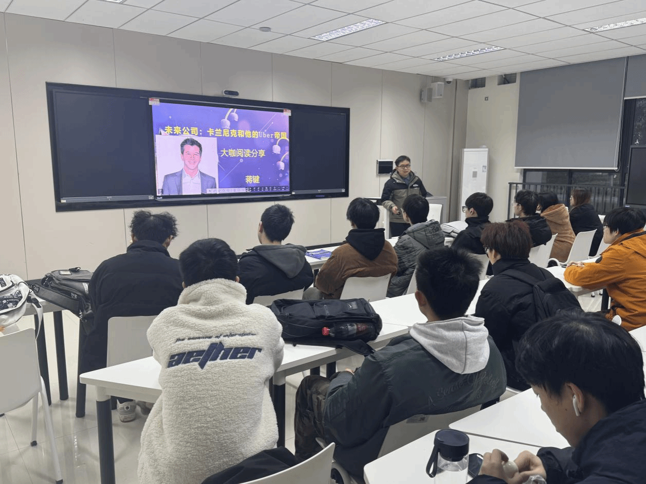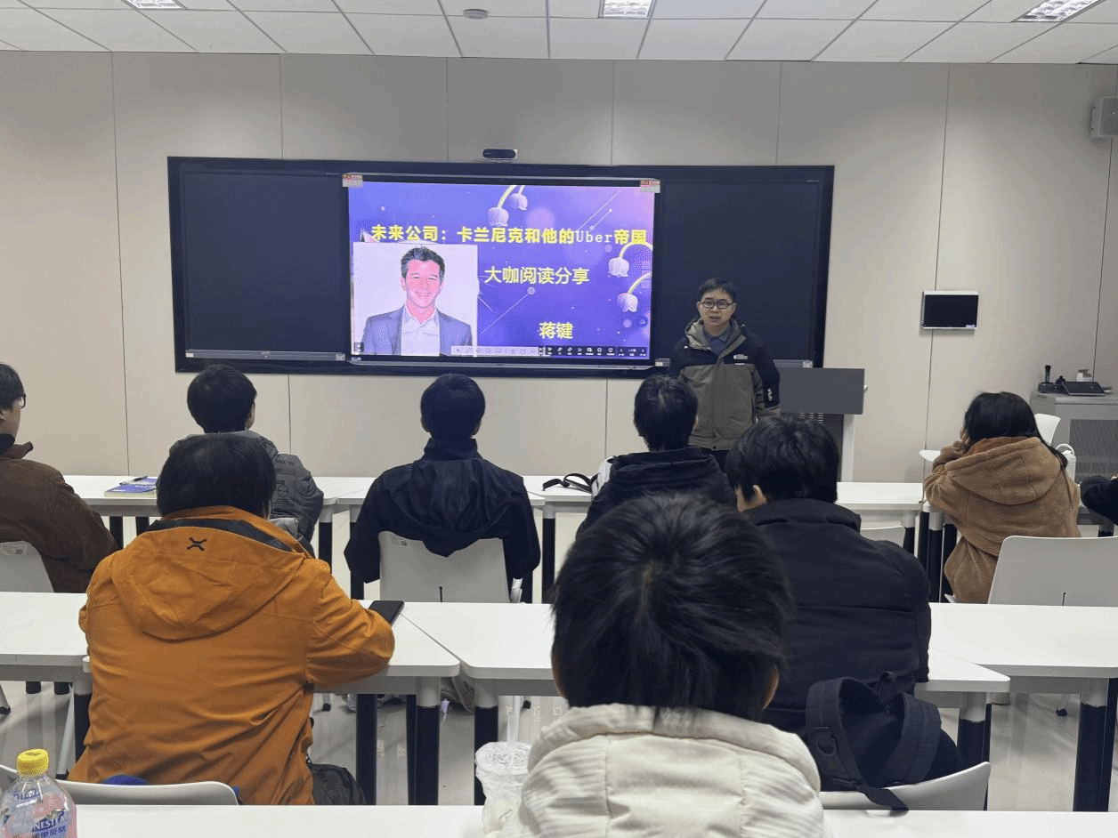 蒋键老师分享了最近读的《未来公司:卡兰尼克和他的Uber帝国》。在互联网+时代,特拉维斯·卡兰尼克无疑是新一代创业偶像。作为Uber的创始人和前首席执行官,他不仅颠覆了传统交通出行模式,更是重新定义了现代企业的成功与挑战。从卡兰尼克身上我们看到了企业家不屈不挠的精神,同时他们在创业时的一次又一次的创新,企业家最为重要的两个特质就在于创造性和不屈不挠,以及解决问题的能力是我们学习的好榜样。书中也让我认识到企业家精神的重要性。卡兰尼克身上所体现的敢于冒险、勇于创新、不畏艰难的精神品质,是新时代企业家必备的素质。正是这种精神品质,让他能够在困境中寻找到突破口,带领企业走向成功。鼓励同学们培养坚韧不拔的企业家精神,为以后的职业生涯规划做好铺垫,同学们深受启发。
