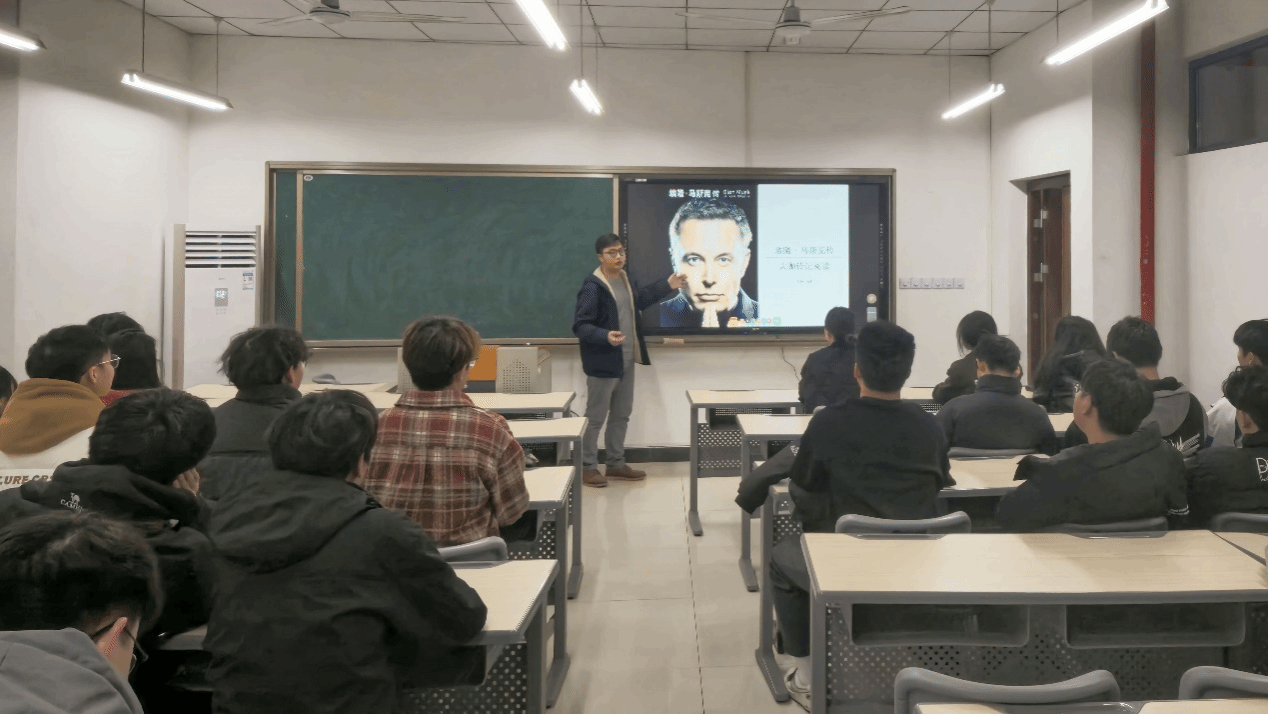 12月11日,智能装备教研室岳丰老师带领2024级电气工程及其自动化10班全体同学在竹逸A101教室举办了《埃隆·马斯克传》大咖阅读活动。