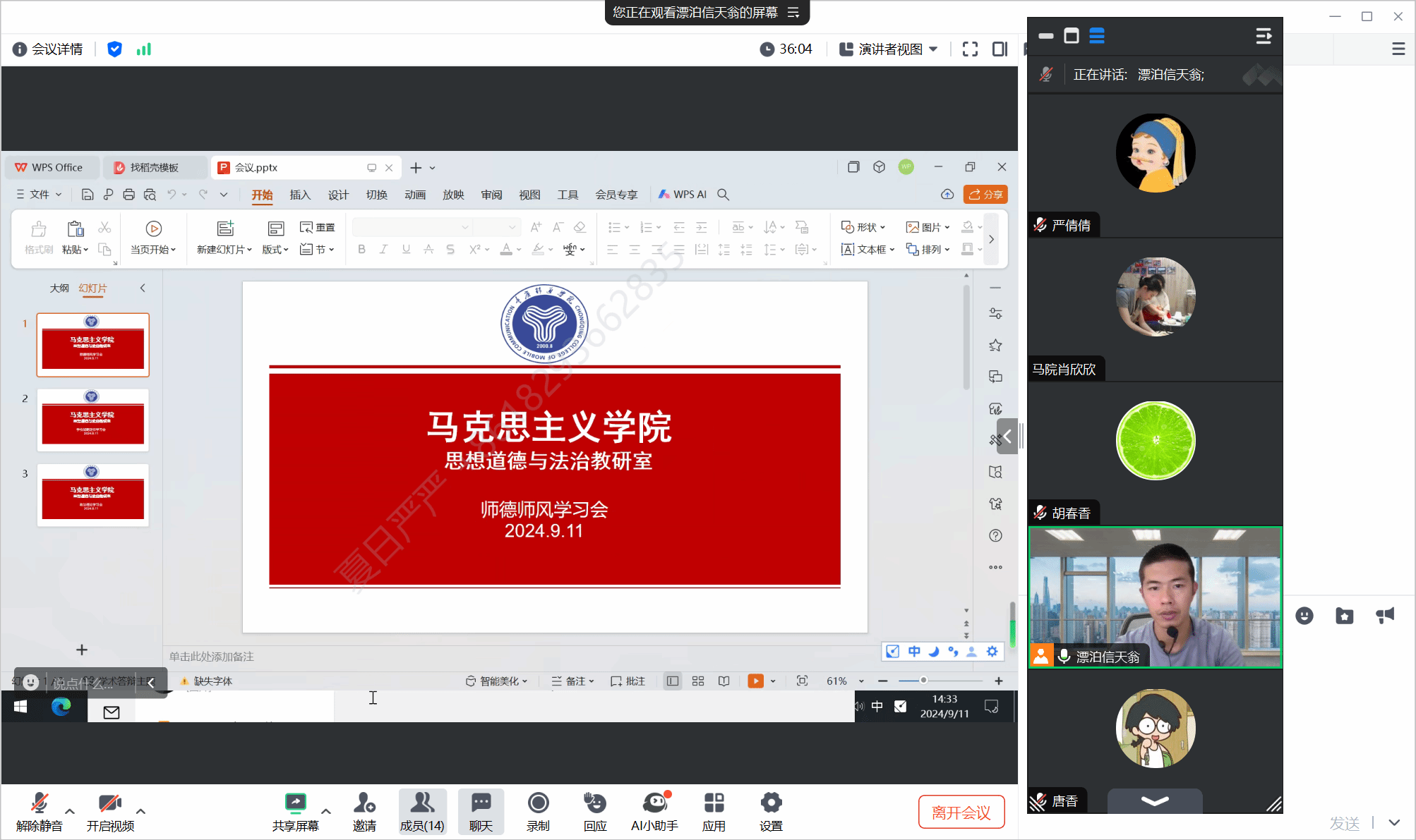 9月11日,马克思主义学院思想道德与法治教研室举行了以“深化师德师风建设,铸就新时代教育之魂”为主题的师德师风学习会。会议由教研室主任杨勇主持,思想道德与法治教研室全体教师参加。