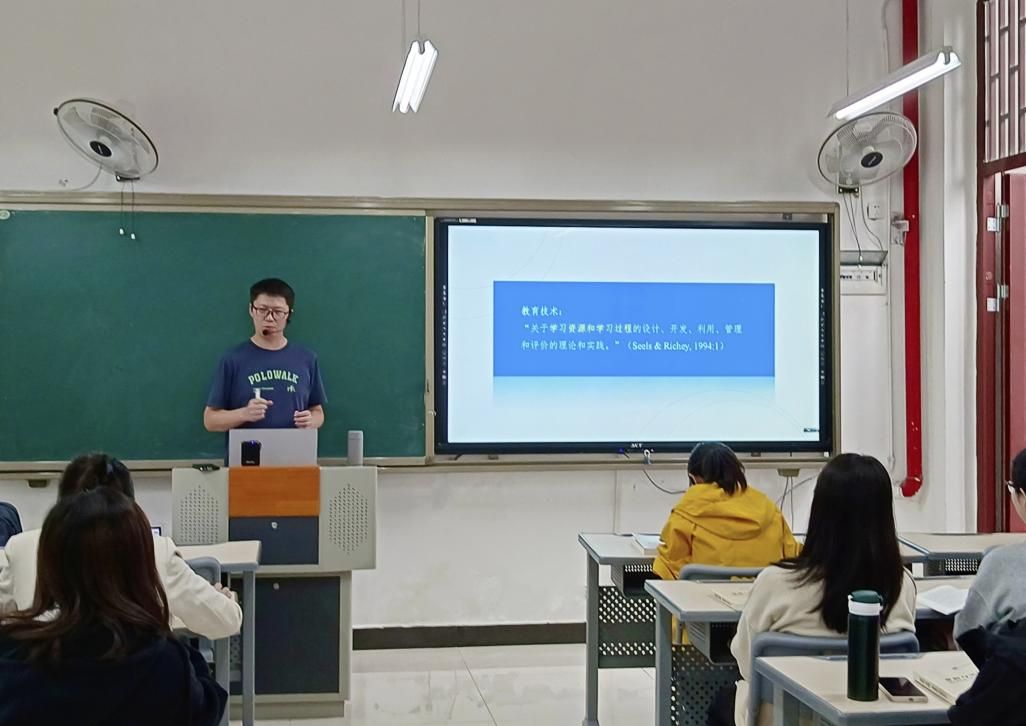随后,骨干教师杨加伟老师以数字赋能外语教育为主题,以微课制作为切入口,从选题、设备选择、素材整理、制作流程到创新方法等方面,详实介绍了当今数字化教学资源开发与应用的实践经验和技术。杨老师谈到,随着科技的发展,数字技术已经逐渐成为教学领域不可或缺的一部分,通过数字赋能外语教育教学可以给教学方式带来创新,使教师可以开展更加广泛和多样化的教学活动,以促进学生的学习兴趣与成效。