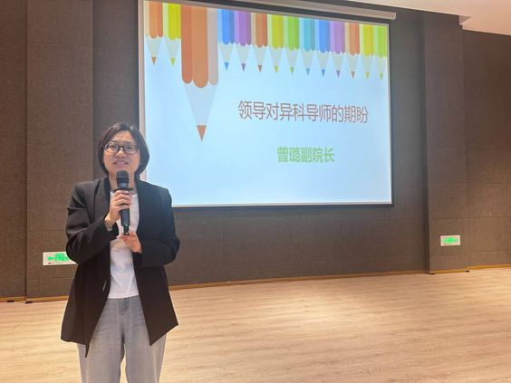 最后,曾璐副院长对异科导师的工作提出了重要指导,并对导师们寄予了新的期望。她强调导师们需精确地满足学生的需求,从多个维度为学生提供必要的支持。导师们应立足于实际工作,结合实际情况,注重总结经验,发现学生的兴趣、关注点以及个性化指导的切入点。同时,导师们要寻找能够激发学生热爱、专注和自信的有效途径,以及促进师生共同学习体形成的策略。导师们应全力以赴地参与学生的成长管理,创新工作方式,全方位地陪伴和培养学生,从学习和生活的各个角度给予关注和关怀。导师们要以身作则,通过言传身教,与学生共同创造更多的价值和感动。