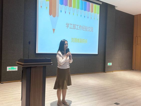 随后,刘薇唯副院长就学工和异科工作融合进行经验分享,她指出,在异科工作开展过程当中要用心开展丰富的活动,过程中要注意与辅导员沟通,全方面了解学生情况,刘院长还强调,异科工作不仅要引导学生树立正确的职业观,还要与学院活动紧密结合,共同推动异科工作的深入开展。