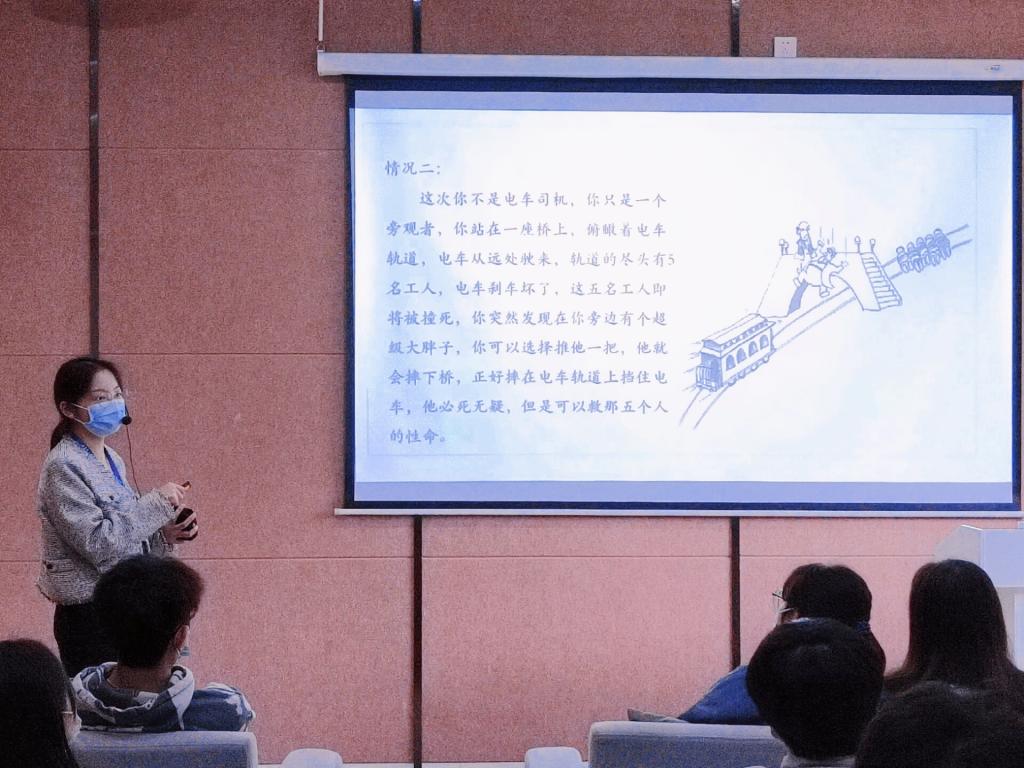 随后,李洋老师开启科幻与法律碰撞的第二站——电车难题。李洋老师指出,《流浪地球》中火种计划实施后,全球播报倒计时七天,这实际上抛弃了“小破球”。是空间站带着太空所有人、种子、图谱等一走了之?还是考虑到地球上所有生灵?“火种计划”其实是一个经典的电车难题。李洋老师从两个经典的电车难题出发,从法学和哲学的角度分析了电影人物的行为后果与逻辑思维方式,并再次提及到黄永佳老师所强调的家国情怀,把科幻与法律、哲学梦幻联动。
