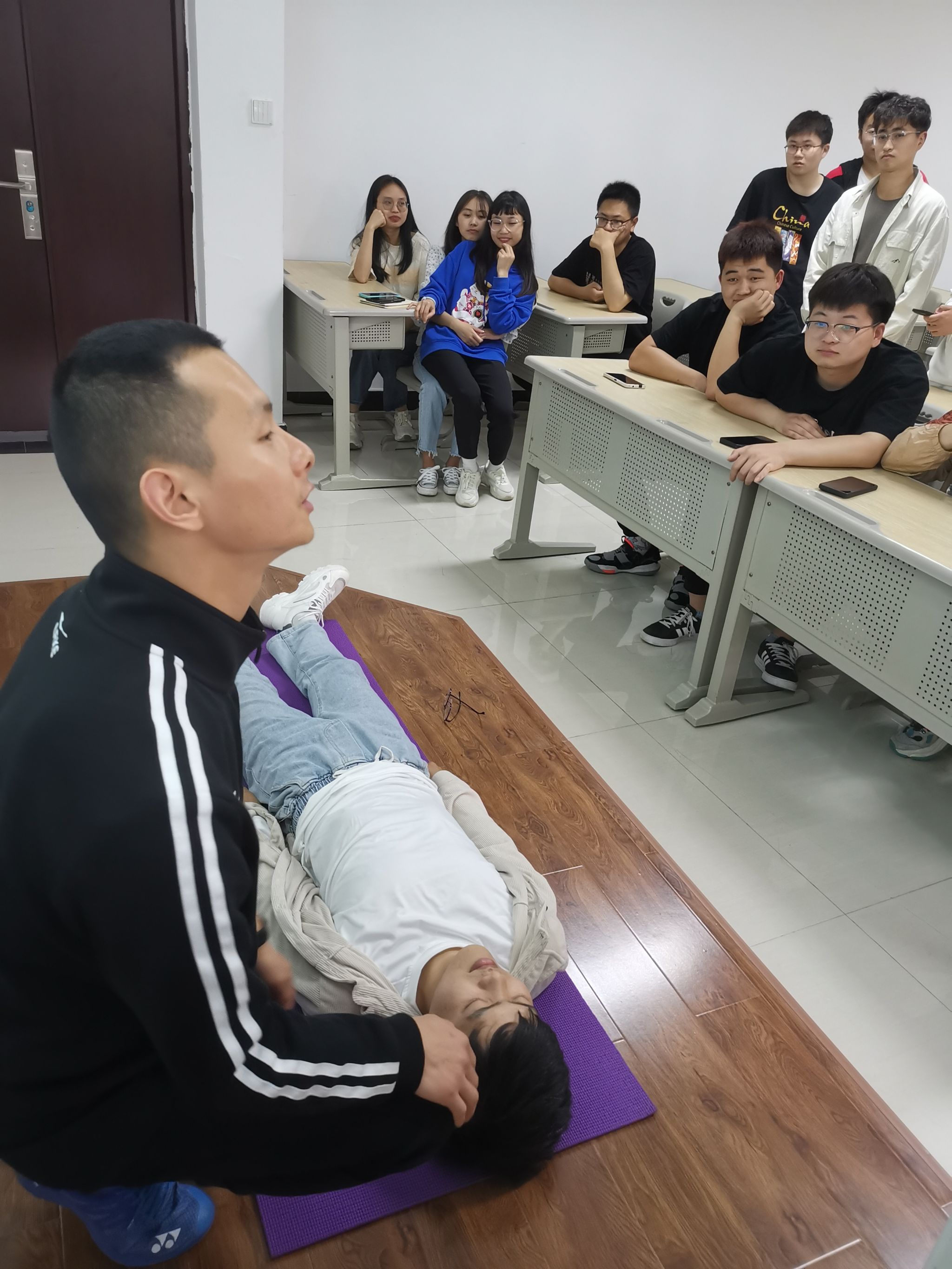 异科导师王伟伟老师结合大量临床实例,通过简洁、形象、生动的幻灯片展示,深入浅出地阐释了心肺复苏术的概念,并详细讲解了突遇晕倒病人如何调整体位、打开气道、判断呼吸、实施人工呼吸、胸外心脏按压等操作步骤,特别强调了心脏骤停黄金4分钟的救治时限与正确拨打120的方法,加深了大家对救护流程的理解和记忆。心肺复苏术模拟展示环节,王老师利用专业的技术和娴熟的手法演示了成功救护的全过程,迎来了现场阵阵掌声。同时大家踊跃参与互动,主动上台亲身体验心肺复苏操作,通过手把手的指导和对初学者容易出现的错误进行一对一的点评,更利于大家有效地将课堂知识转化成实际操作技能,大大提高培训效果。紧凑且饱满的课堂知识、专业且生动的模拟演练,既让大家掌握了基础医务知识,又获得了救护的亲身体验,有利于学生在突发事件的紧急处理中发挥良好的指导作用,真正具备自救互救的能力,确保自身安全的同时最大程度上救护他人。