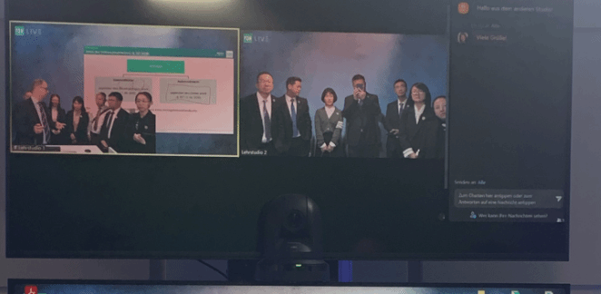 德国埃森经济管理应用技术大学(FOM)作为本次出访德国的第一站,校长白潇乐热烈欢迎代表团一行,此后,米勒教授向大家介绍了FOM的线上演播厅,该演播厅采用ZOOM作为线上平台,用于解决远距离教与学,以及人数众多的教学与讲座的实现问题,该平台还可以实现教师与学生的实时互动和交流,方便教师及时了解学生的学习情况和需求,进而调整教学策略,提高教学效果。
