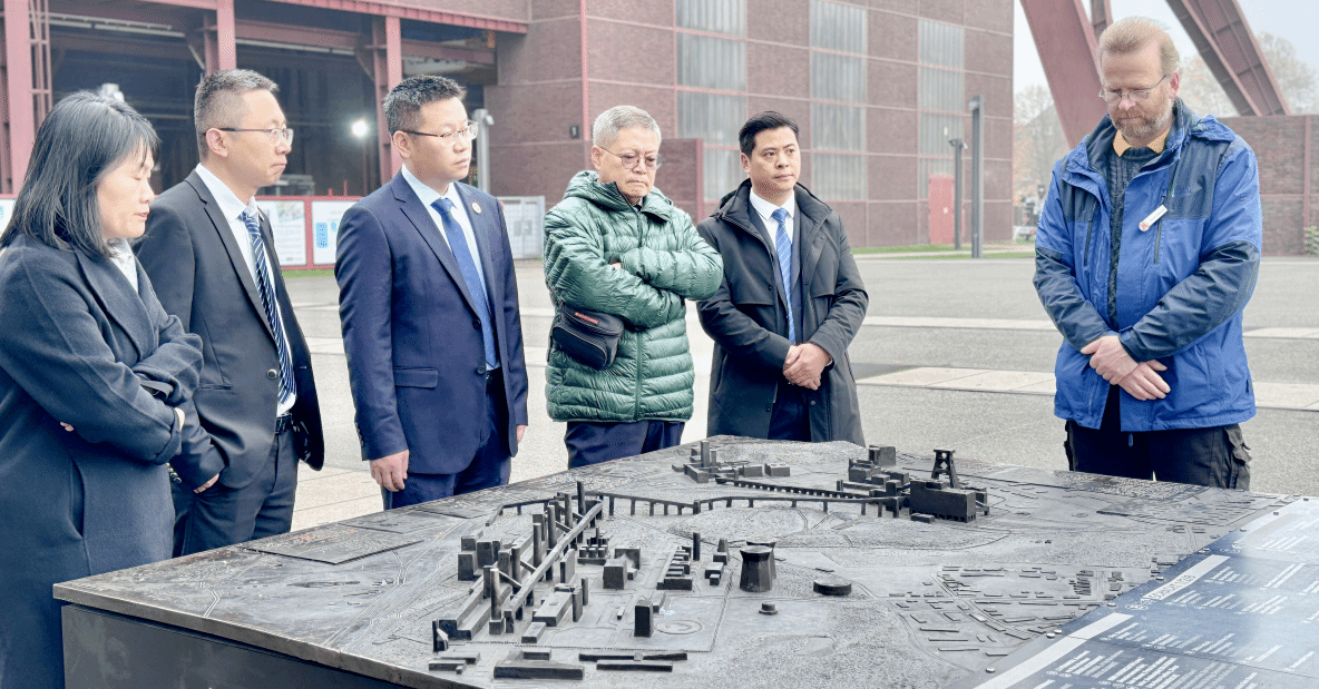 FOM大学埃森校区位于鲁尔工业区,埃森市是欧洲经济文化中心,是欧洲绿色之都。世界三大工业设计奖之一的红点奖也设置在埃森市。参访期间,代表团一行参观了位于该市的德国关税同盟煤矿世界遗产。关税同盟煤矿是德国工业历史的重要见证,这里保存了丰富的历史遗迹和独特的工业景观,展示了一个时代的辉煌和变迁,也展现了德国工业的独特魅力。