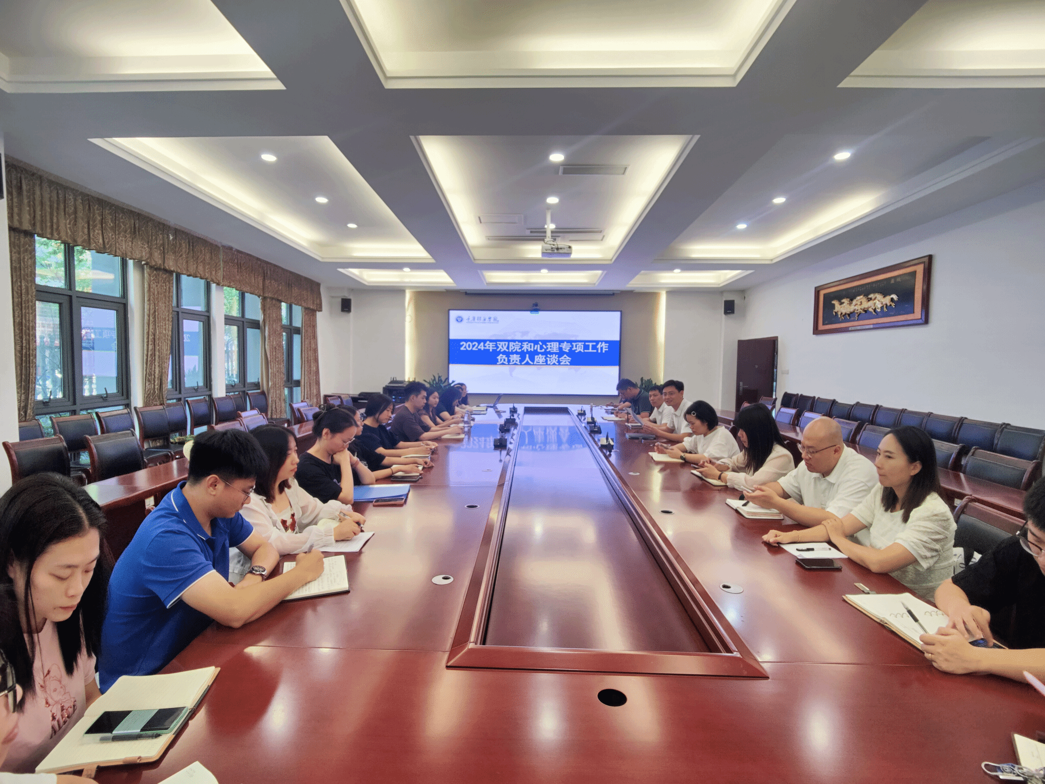 为进一步推动我校双院制建设及心理健康教育工作的深入发展,提升工作质量与效率,7月3日,我校学生处成功举办了2024年双院与心理专项工作负责人座谈会。出席本次座谈会的有学校党委副书记、常务副校长周伟,学生处、团委、书院部部门负责人,各学院学工副院长,共同为我校的队伍建设工作把脉定向,谋划未来。