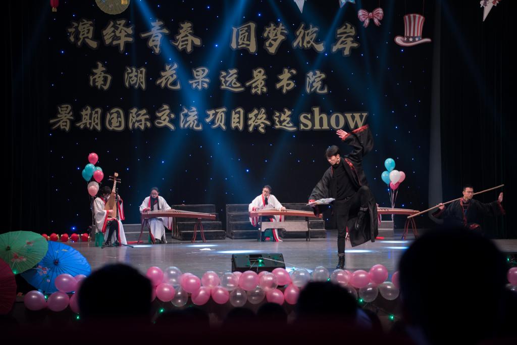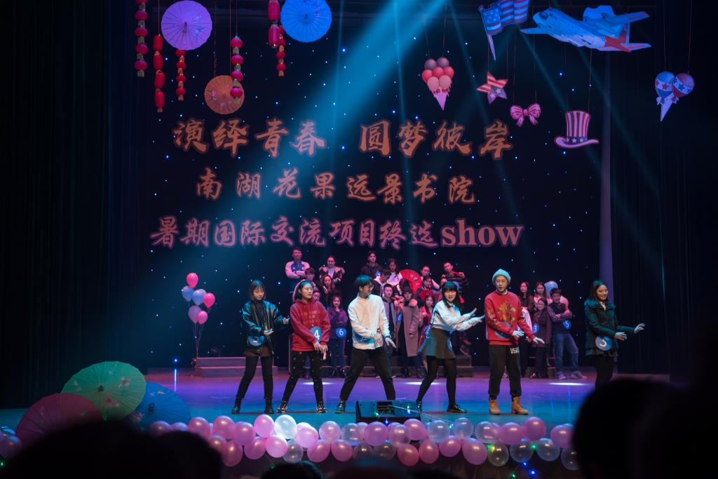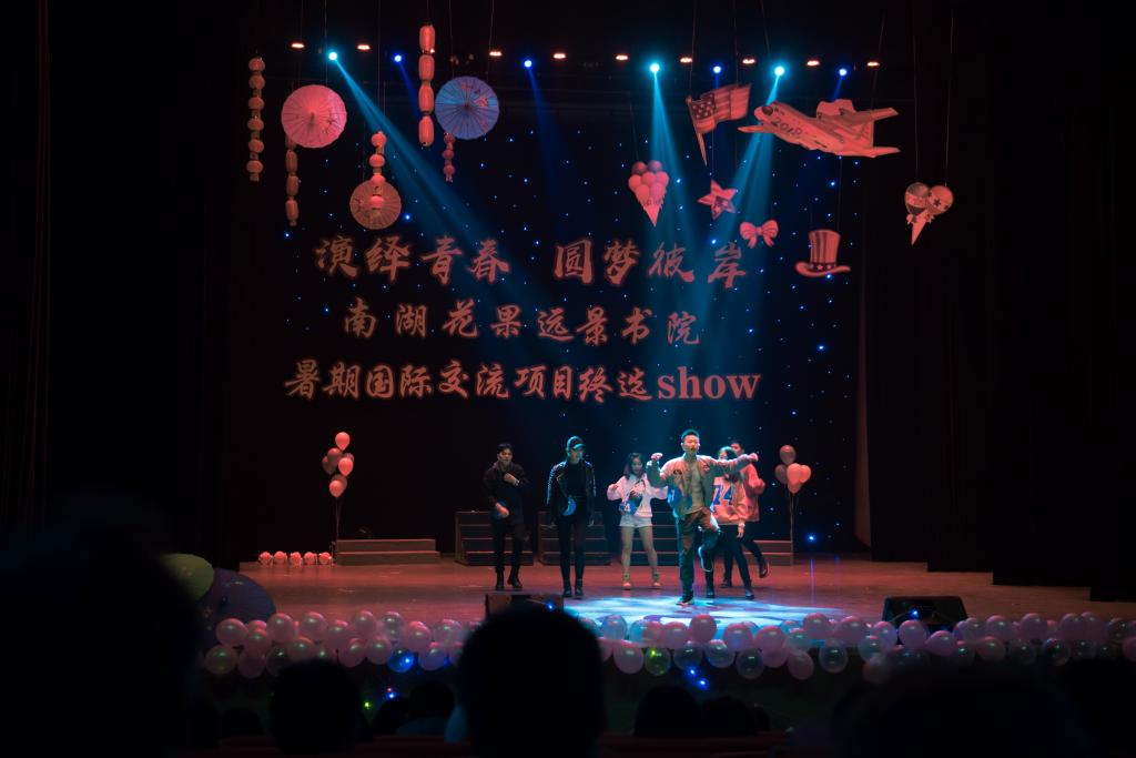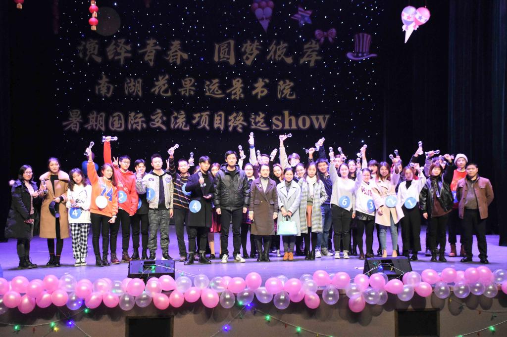 12月12日晚上19:00,南湖、花果、远景书院2018年暑期国际交流项目终极Show在缤果大剧院拉开了帷幕。伴随着一曲青春活泼地开场秀,选手们闪亮登场。饱满的精神状态以及斗志昂扬的拼劲儿丝毫看不出连日的“备战”所带来的疲惫之感,仿佛一股无形的力量喷涌而出,都展现着自己最完美的一面: