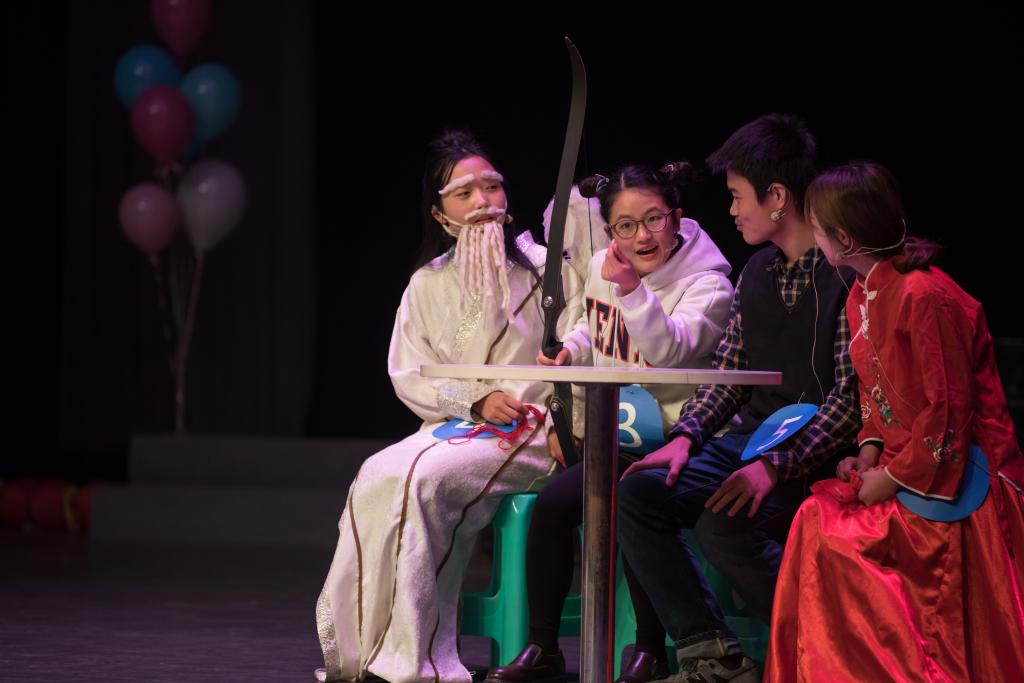在第二个团队风采展示环节,将晚会推向了高潮,选手们以六人为一组开始了独具创意的演出。第一组选手通过曼妙的舞姿与古风的诗歌描绘了一韵味十足的《逍遥游》,充满着奇特的想象和浪漫色彩,也怀揣着追求梦想的奔放与自由;第二组选手演绎了经典的小品《恋爱保险》,选手们告别“呆板”的台词,将人物塑造得惟妙惟肖,也歌颂了人与人之间的闪亮之光;第三组选手则用原创的小品谱写着一家三代的美好,充满着温馨,也寓意着选手之间长存的友谊如亲情般深厚;第四组选手个个都怀揣“绝活”,在《笑傲江湖》中演绎着扇子舞以及展示着悠远地琵琶弹奏,虚实的巧妙结合牵动着观众们的思绪;最后一组选手也不甘示弱,经典童话与时尚rap的穿插颇具创新与看点。