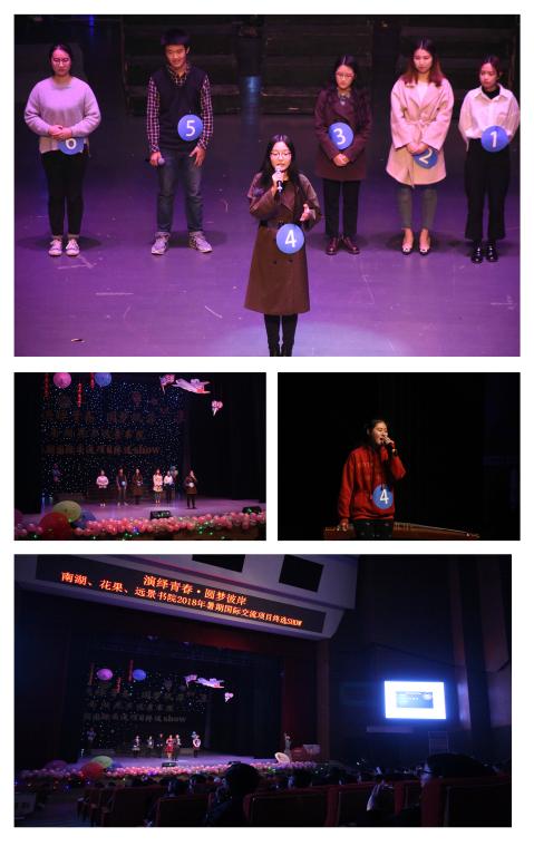 10月20日起,2018年暑期顶尖留学项目—美国常春藤盟校哥伦比亚大学、加州大学伯克利分校暑期留学项目正式开启,助力广大书院学子实现美国常春藤盟校交流梦,扩宽国际视野。期间,书院通过海报、宣传折页,“移通晓英才”、“书院阿部”等微信公众平台,校内官网、校园广播站、QQ校园号等线上广泛宣传;依托书院发展导师、院系辅导员召开专题会、进宿舍等广泛线下宣传,全面信息覆盖,鼓励学生积极报名。经过了为期30天的紧凑宣讲、报名阶段以及激烈的初赛复赛,最终脱颖而出89名选手进入到终极秀环节,其中南湖、花果、远景共晋级30名选手。本次终选秀分为两个环节。第一轮为主题演讲,各选手围绕“做一名未来的领导者”开展一分半钟个人主题演讲,须融入英语元素,有思想、有逻辑、有创意。第二轮为风采展示。各选手根据赛前随机抽签组成六组,每组五人,在合作与竞争中利用赛前十天时间进行原创作品准备(歌舞、情景剧等,形式不限),晚会现场进行六分钟的作品公演。