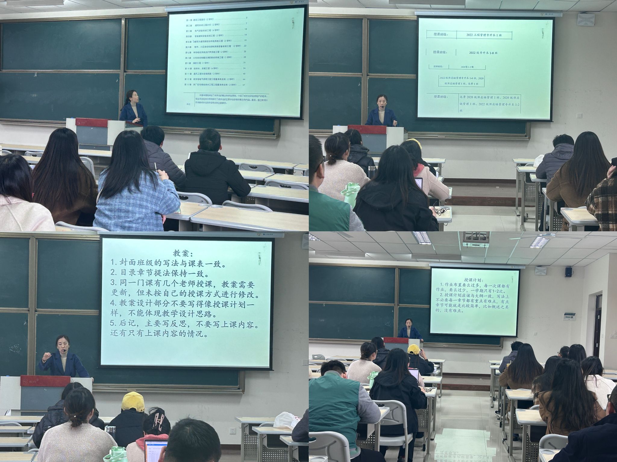 为进一步阿规范教学管理,强化教学过程,优化教学资料,规范教学秩序,不断提升教学质量,11月15日下午14:00,数字经济与信息管理学院于双栀403教室开展了教学资料规范培训会,此次会议由周梦娇老师主持,数字经济与信息管理学院合川校区全体专任教师参会。