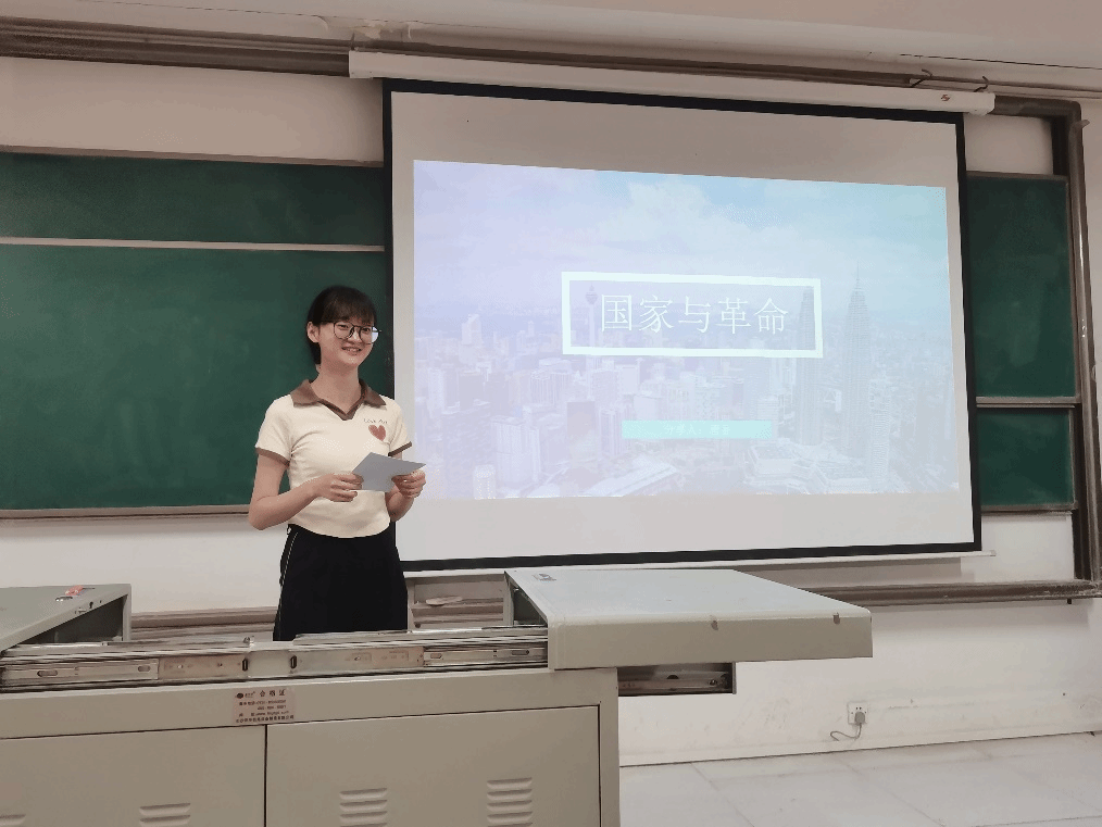 唐老师主要从写作背景、基本思想和当代意义三个方面进行讲述。首先是从思想原因和实践原因两个方面介绍了该著作的写作背景。从思想原因层面来看,是为了清除以伯恩斯坦、考茨基为首的第二国际机会主义者和其他资产阶级学者在国家问题上制造的种种错误观念;从实践原因层面来看,1917年俄国二月革命以后,形成了工兵代表苏维埃和资产阶级临时政府两个不同性质的政权共处的局面,但同年7月,资产阶级临时政府发动政变,使全部政权落到其手中,无产阶级只有举行武装起义,推翻资产阶级政权才能建立无产阶级专政。其次是介绍了《国家与革命》的基本思想。一是无产阶级要用暴力革命打碎资产阶级国家机器,必须系统地教育群众正确认识暴力革命,把暴力夺取革命政权当作一般规律;二是无产阶级专政是新型民主和新型专政有机结合的国家,列宁强调无产阶级专政的民主性是把民主制度大规模扩大,使它第一次成为穷人的、人民的而不是富人的民主制度;三是关于未来社会的发展阶段,列宁在马克思主义关于阶段论的基础上,详细地论述了未来社会发展的三个阶段。最后是讲述了从文本中所领悟到的现实意义。通过阅读《国家与革命》,从中体会到要科学把握无产阶级民主与专政的国家,坚定不移地巩固人民民主专政的国体,需要认识到社会主义现代建设和共产主义建设的长期性,坚定共产主义信念,像马克思那样为共产主义奋斗终身。