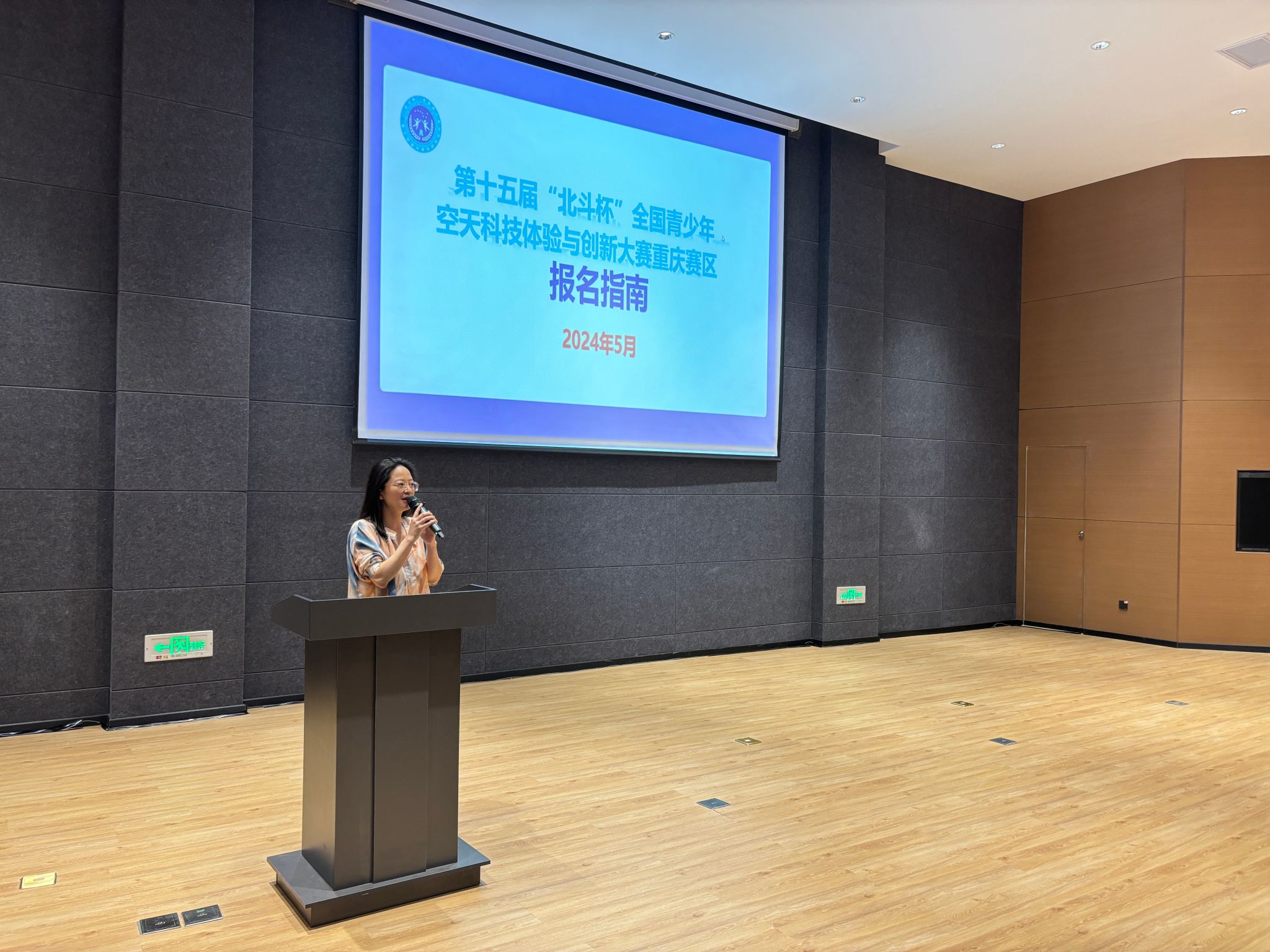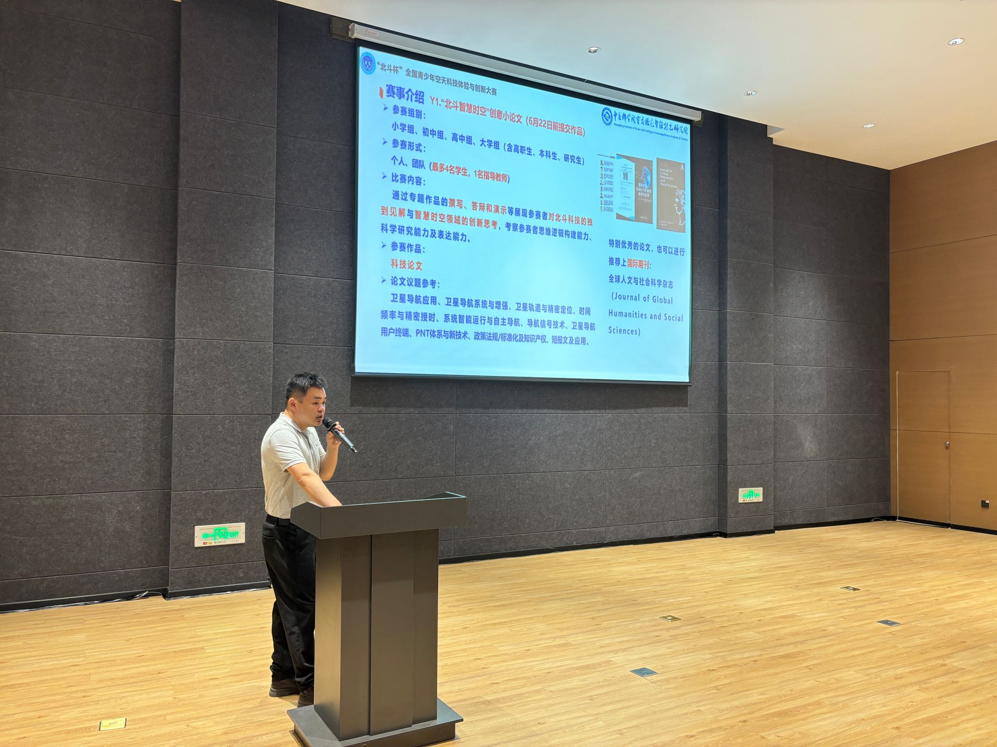 中国科学院大学重庆学院“北斗杯”组委会副秘书长刘一老师向各位老师宣讲了大赛报名指南及作品提交指南。刘老师表示,北斗导航的应用领域非常广泛,无论是用户需求还是社会发展都起到了重要的推动作用,通过北斗杯赛事能够开展北斗导航系统及空天科技知识的普及工作,提升青少年科技创新综合能力,培养北斗以及空天科技事业的后备力量,希望各位老师能够积极组织同学们积极参加,为推动北斗应用出一份力。