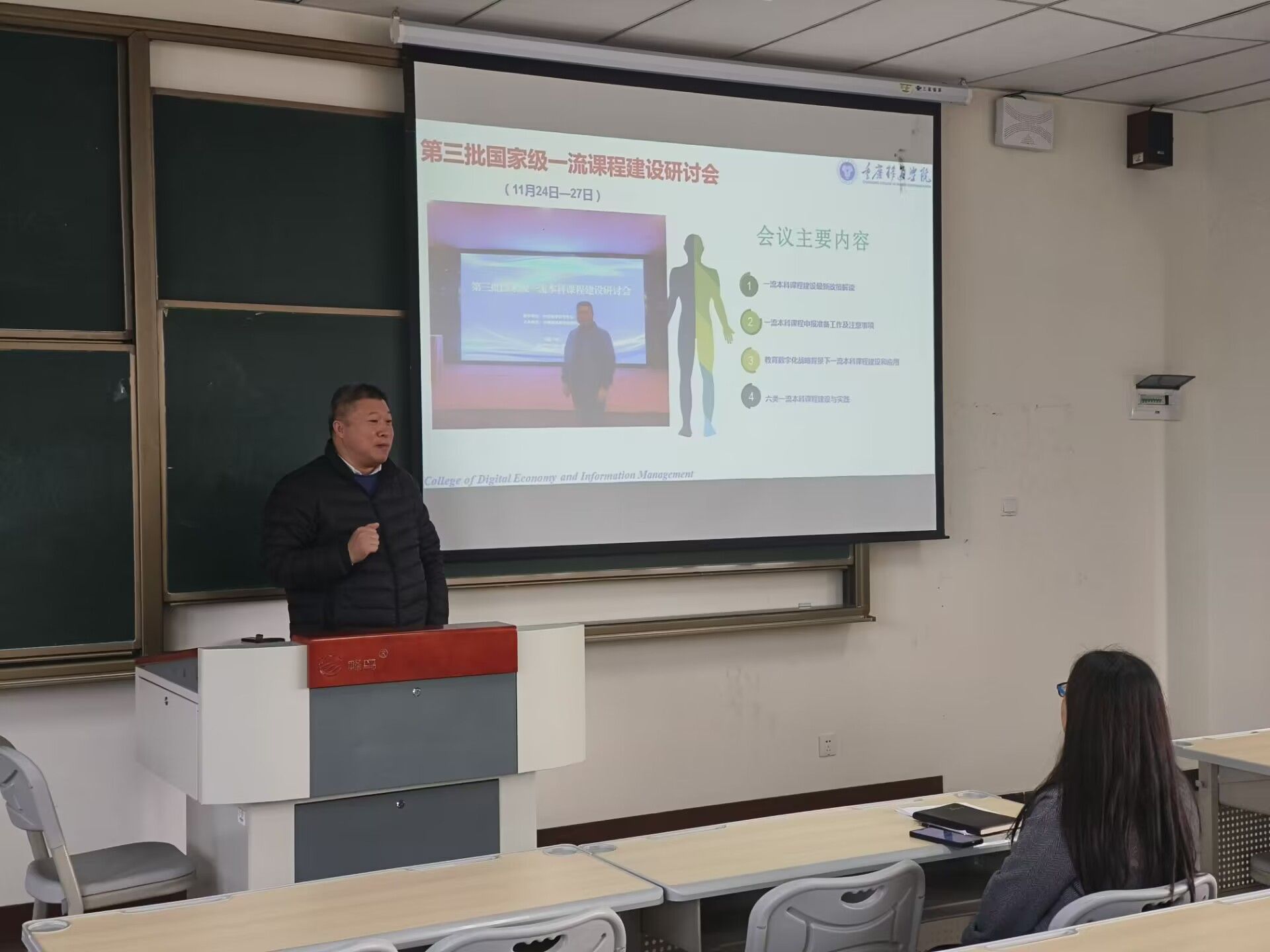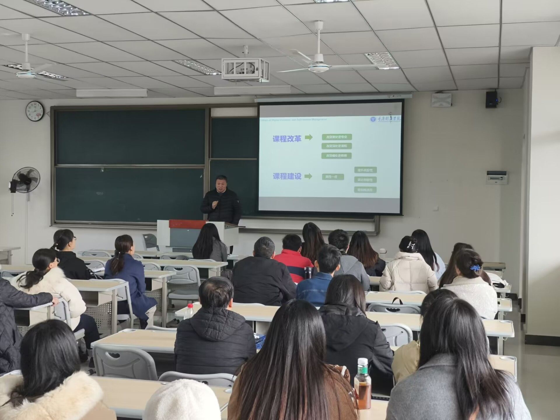 潘院长首先分享了自己在11月24到27日期间到厦门参会学习“第三批国家一流课程建设研讨会”的主要内容,包括一流本科课程建设最新政策解读、一流本科课程申报准备工作及注意事项、教育数字化战略背景下一流本科课程建设和应用、六类一流本科课程建设与实践。