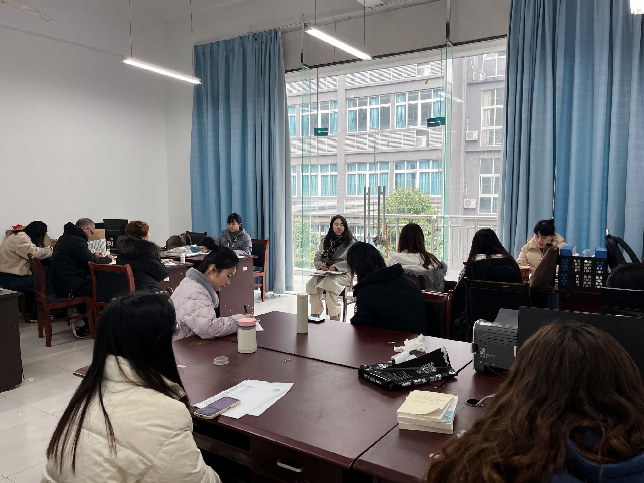 接着,毕老师简要总结了教研室过去一学期的工作,指出成绩的取得源自老师们的不懈努力。同时,结合战略考核目标要求,对本学期即将开展的重点工作进行了部署。她强调,2024年要紧紧围绕学院总体工作安排,以评估为总抓手,全面提升教研室的各项工作水平。