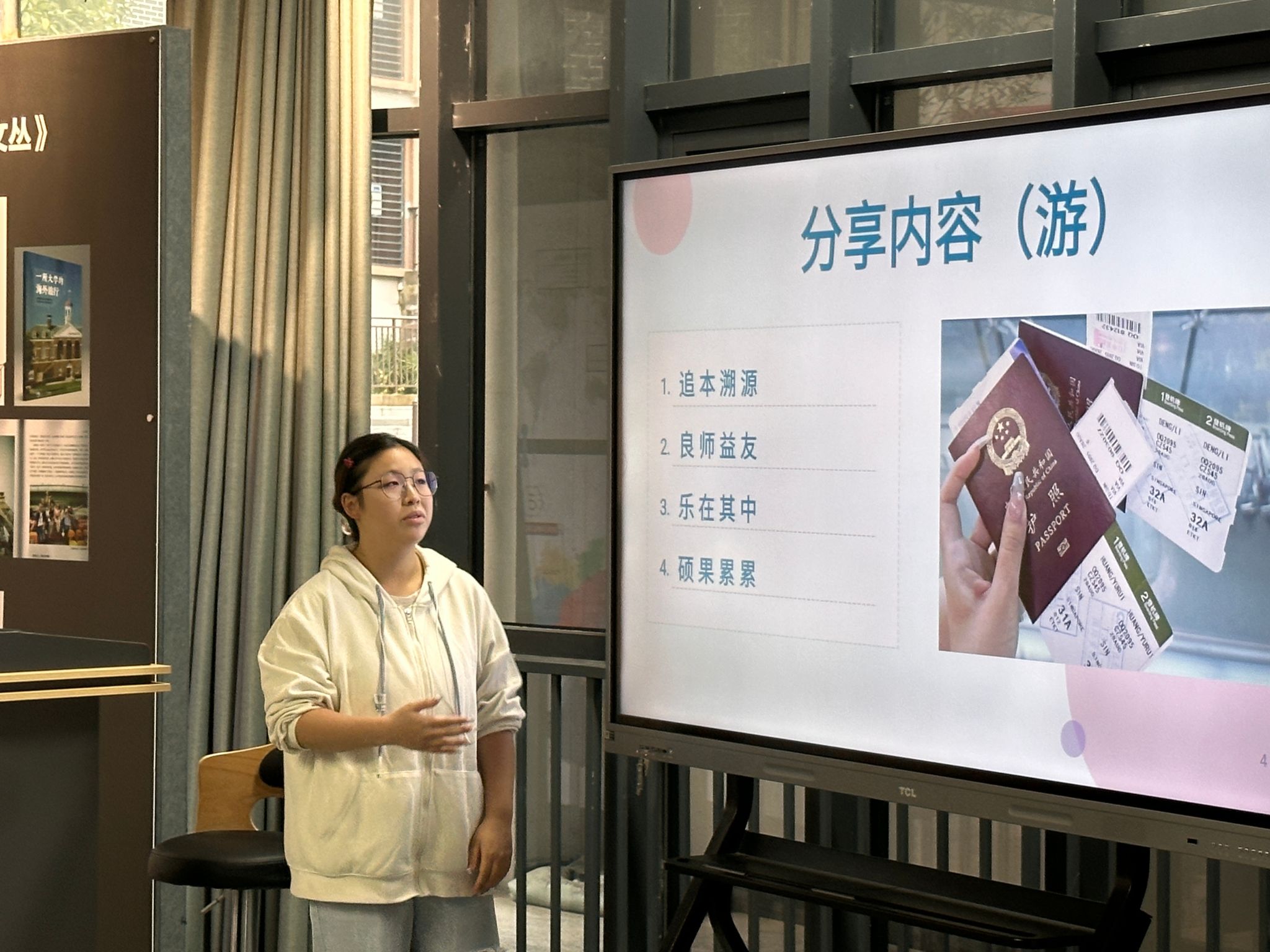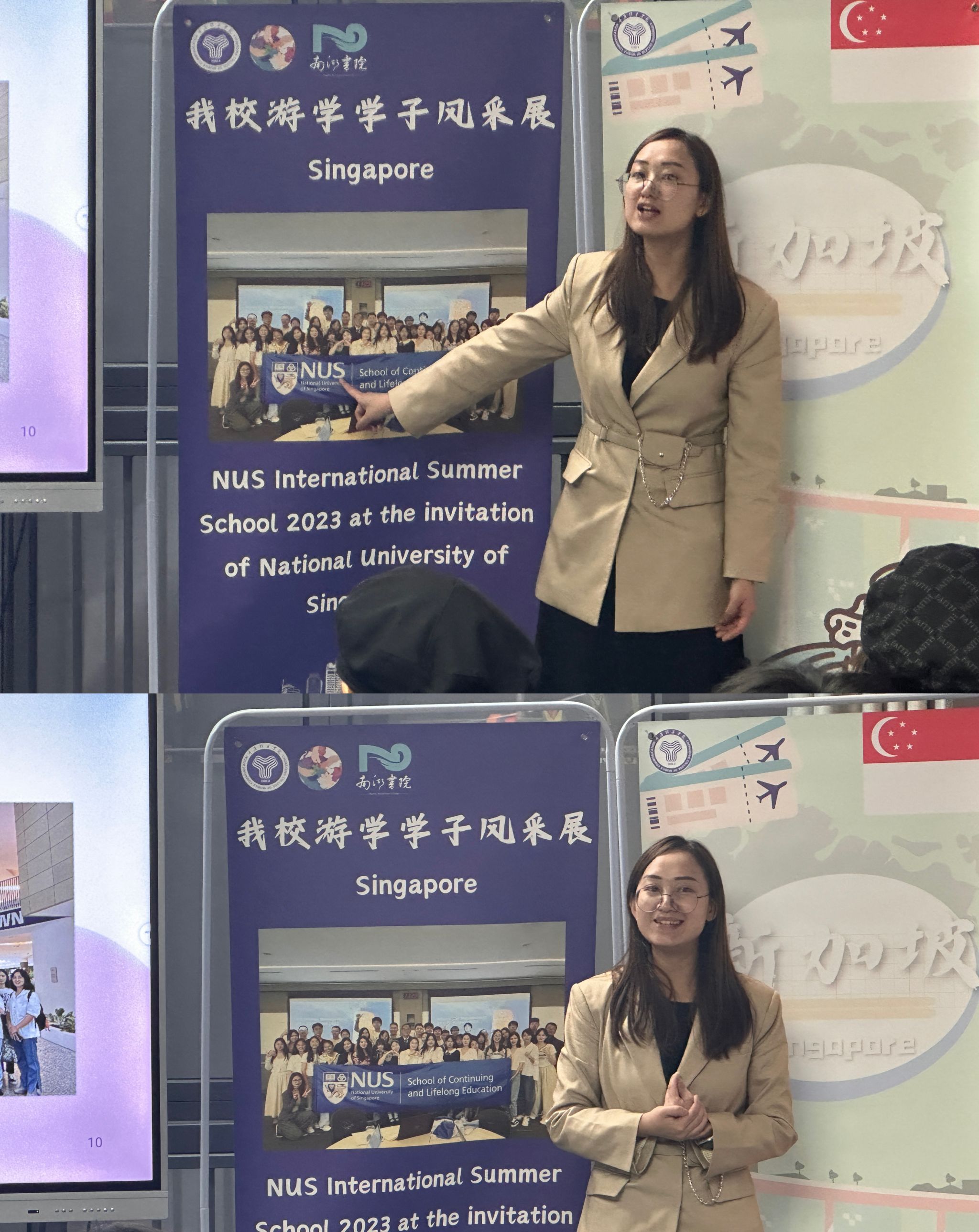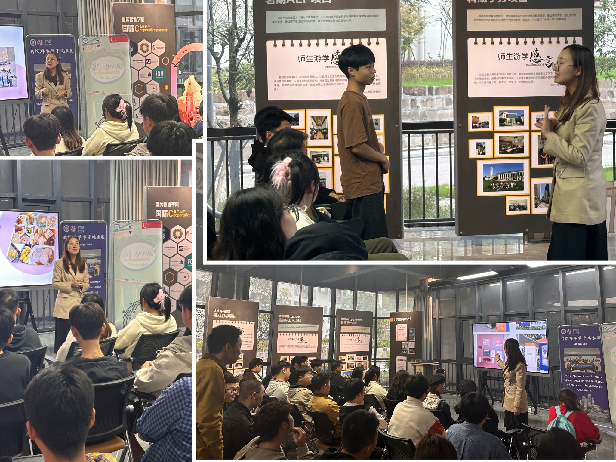 活动初始,出国学生代表邓丽从追本溯源,良师益友,乐在其中,硕果累累四个方面分享了新加坡研学经历。
