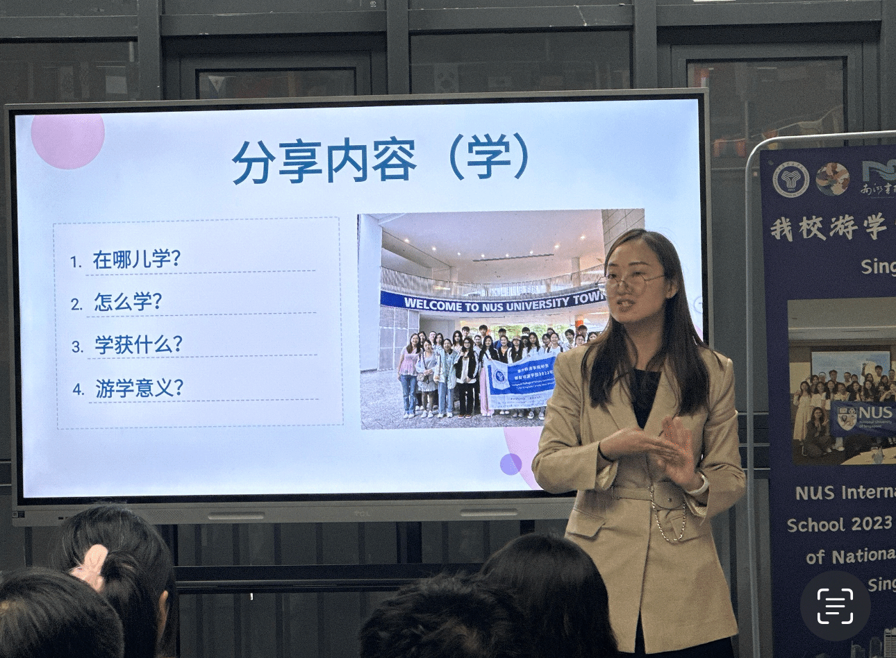 齐旭老师同样从四个小点介绍了此次新加坡研学之旅的学习方面。还分享了同学们在新加坡国立大学学习期间发生的趣事,比如移通学子们努力用不同方法克服语言障碍,这也让齐老师看见了移通学院的同学们刻苦学习的精神。