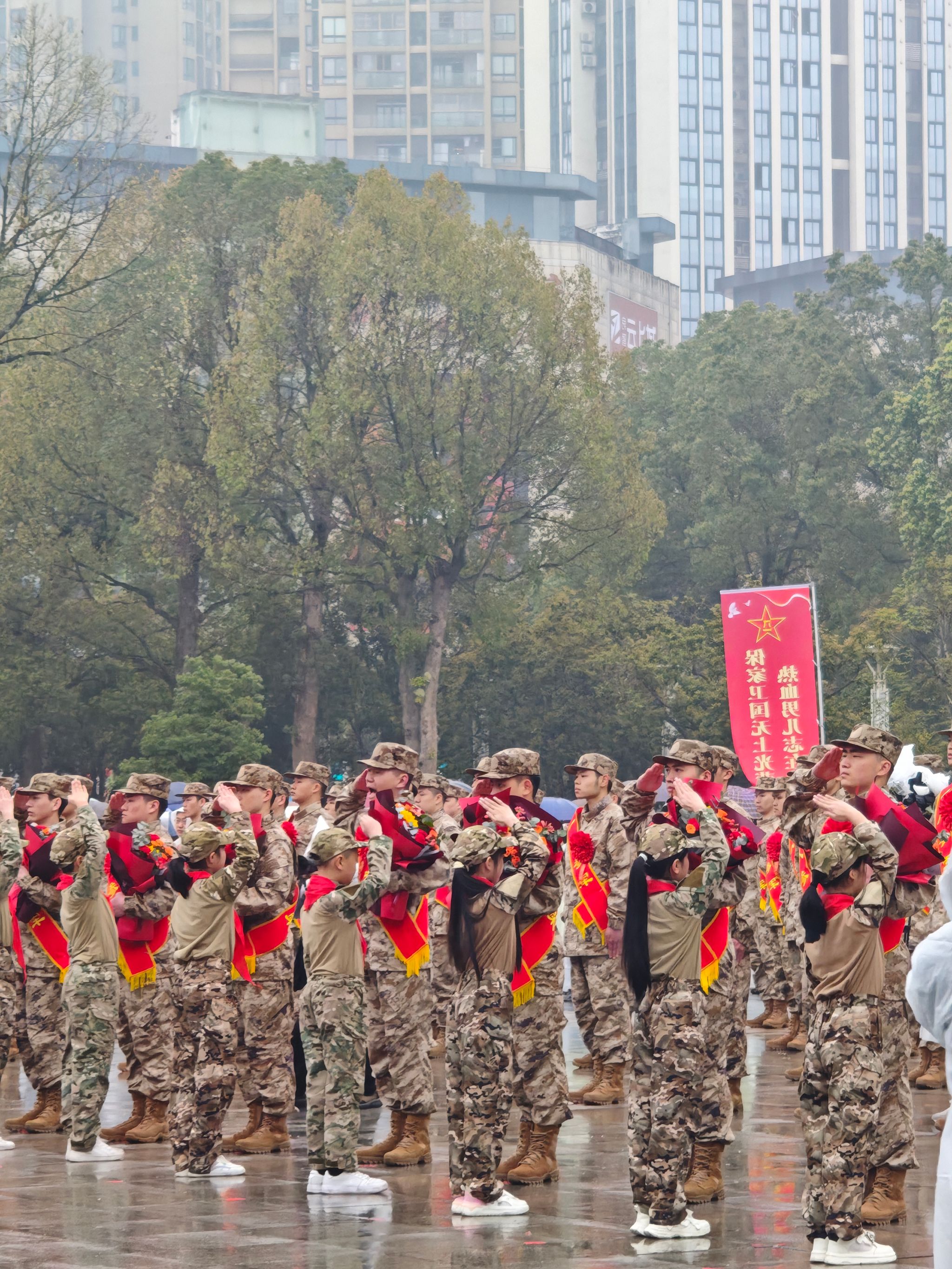 自2025年上半年征兵工作启动以来,我校高度重视,广泛宣传动员,应征地为学校的春季上站人数和走兵人数再创新高,共有150余名学子积极响应祖国号召,踊跃报名参军。经过严格的体格检查、政治考核和役前教育,最终13名优秀学子脱颖而出,光荣入伍。他们专业不同、生源地各异,但都怀揣着同样的报国梦想,选择投身军营,用青春和热血书写无悔人生