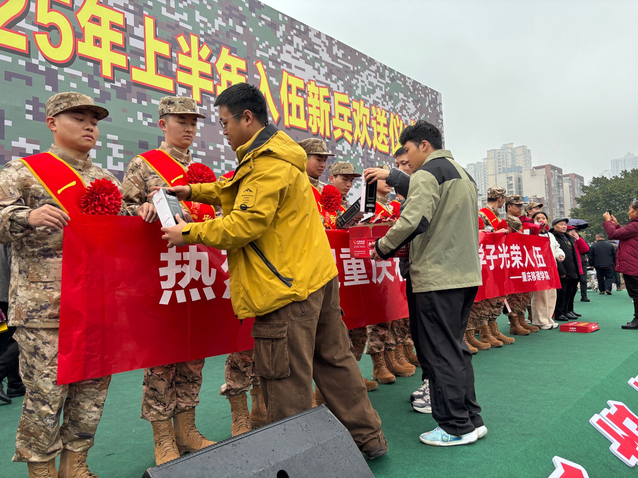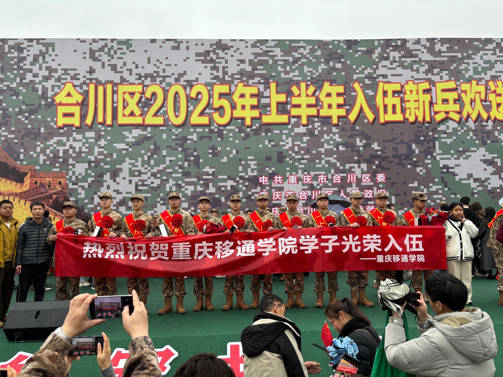 3月14日,合川区2025年上半年入伍新兵欢送仪式在区政府广场隆重举行。重庆移通学院学生处(武装部)处长陈帅、征兵工作站教师江旭东参加仪式,为我校13名光荣入伍的新兵送上真挚祝福和学校精心准备的纪念品。我校13名新兵身着迷彩,胸戴红花,精神抖擞,带着家人的殷切期望和母校师生的深情嘱托,即将踏上保家卫国的新征程。