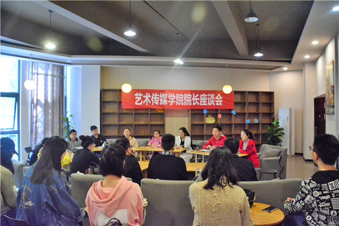 为深入了解同学们的学习和生活,倾听他们在校的点点滴滴,在这个草长莺飞,为青春发声的阳春三月,艺术传媒学院的师生们欢聚一堂,如家人般进行本学期的第一次交流。3月22日上午10点,艺术传媒学院院长座谈会在行政楼一楼咖啡厅举行。参加本次座谈会的有艺术传媒学院李轶天副院长、数字媒体艺术专业教研室主任龚晓雪副教授、广播电视编导专业张梅老师、李琦老师,艺术传媒学院学工办主任李克伟老师、辅导员陈婷婷老师、李军老师,以及2015级动画、广播电视编导、数字媒体艺术三个专业的学生代表们。