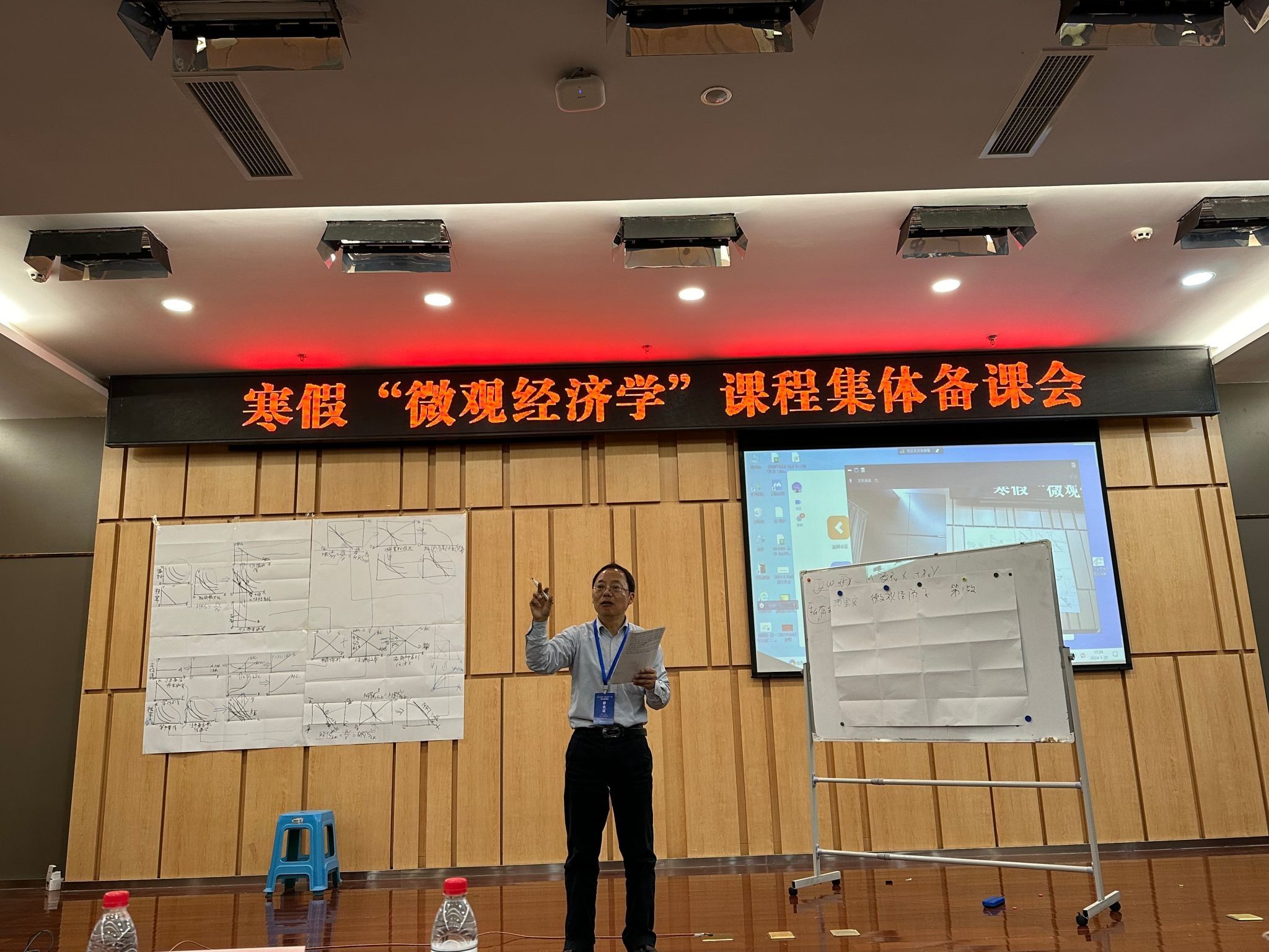 该备课会由重庆财经学院李政军教授组织发起,以此来提升教师教学能力,推进课程建设质量。备课会集合了众多的专家学者,中国人民大学刘凤良教授、西华大学唐丹教授、重庆工商大学刘晗副教授、南航金城学院奚曦副教授以及重庆财经学院潘曦副教授做了专题讲座。备课会采取了“讲、评、说”的形式,由专业教师进行讲授、专业学者进行点评、参会人员进行评说,以此来提升集体备课的质量提升。在经验分享阶段,四位专家针对国家一流课程建设和教学创新大赛经验进行交流分享,进一步为课程建设、教学技能提升提供了引导。