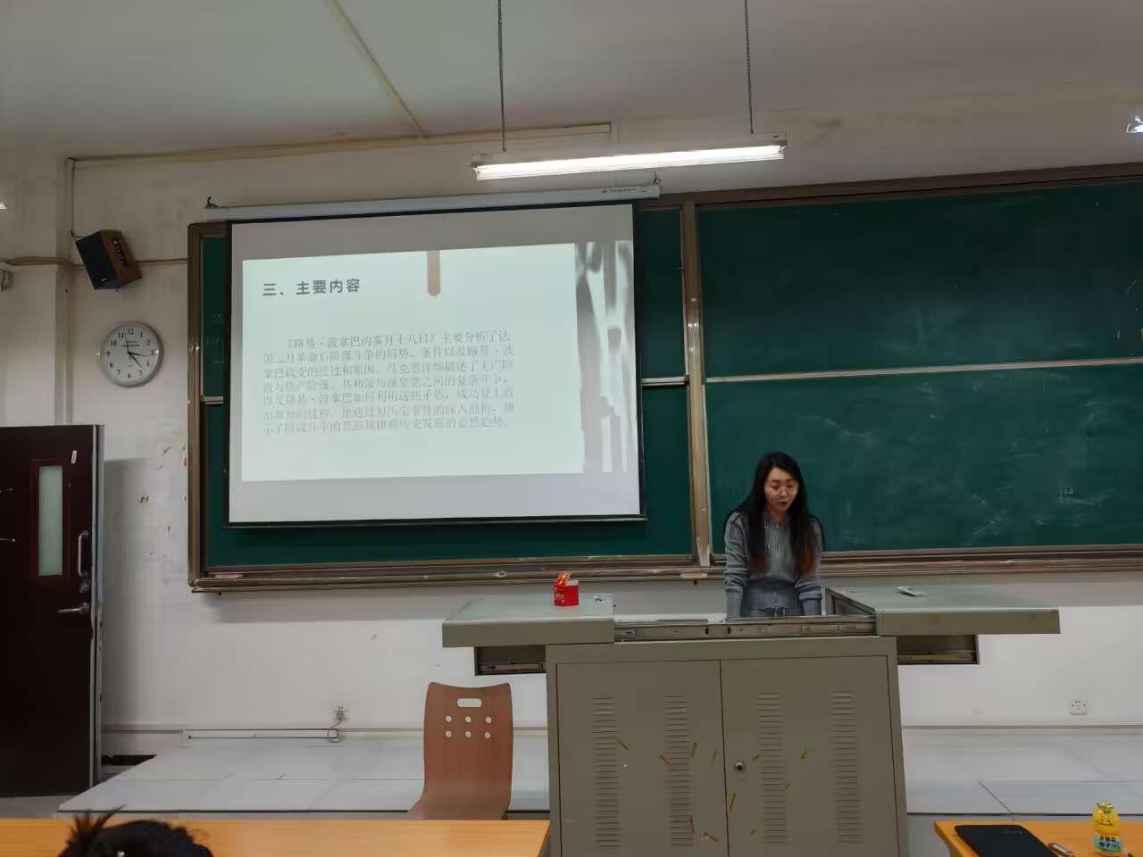 在分享会上,李老师从写作背景入手,介绍了她最近所研读的《路易·波拿巴的雾月十八日》一书,该书阐述了路易·波拿巴政变的历史情境及其对法国政治格局的影响。同时,李老师从历史意义的角度分析了该著作在马克思主义理论发展中的重要地位,强调了其对理解历史唯物主义和阶级斗争理论的贡献。