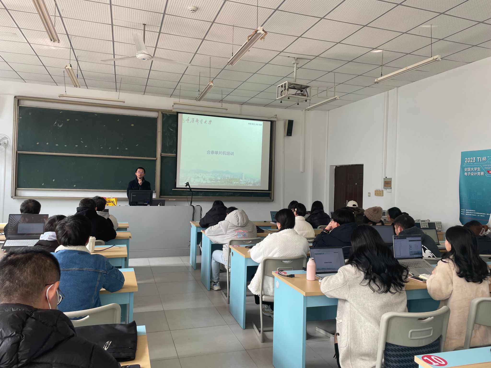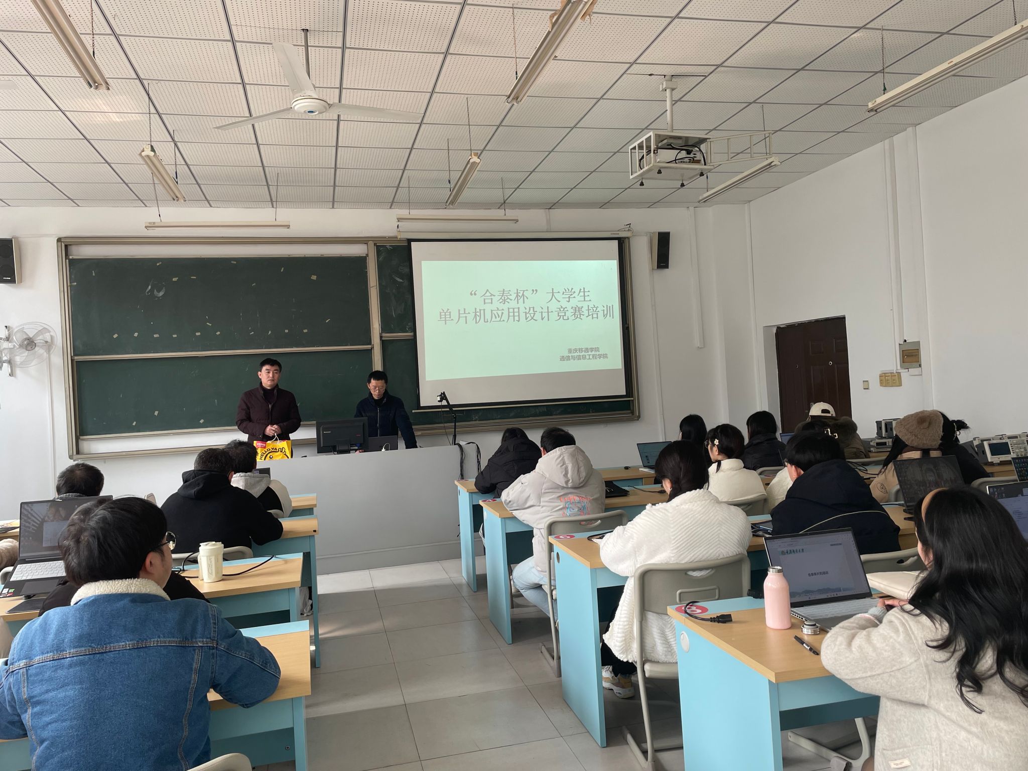 为提升指导教师和参赛学生的专业综合技能和实践能力,激发创新思维和团队协作能力,3月6日下午,通信与信息工程学院专业基础教研室特邀重庆邮电大学电子技术创新大本营学生创新与学科竞赛训练基地副主任石鑫副教授在S1401教室开展“合泰杯”大学生单片机应用设计竞赛培训。此次会议由教研室主任席兵主持,指导教师和参赛学生参加。