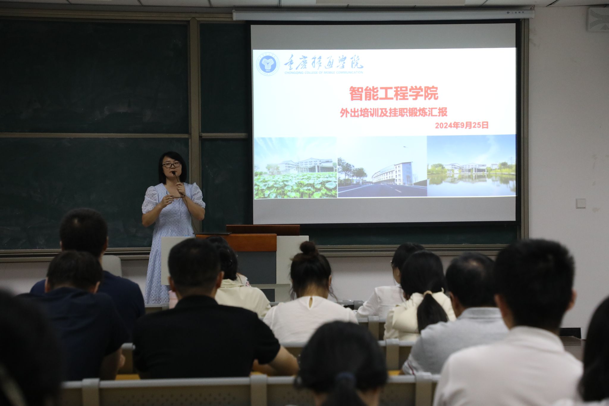 为进一步加强学校“双师双能型”教师队伍建设,提升专业教师技能水平和教学质量,提高教育教学水平,智能工程学院于9月25日下午,在9209教室开展暑期教师外出培训汇报与交流活动。活动由智能工程学院教学副院长李洁主持,智能工程学院全体教师参与本次活动。