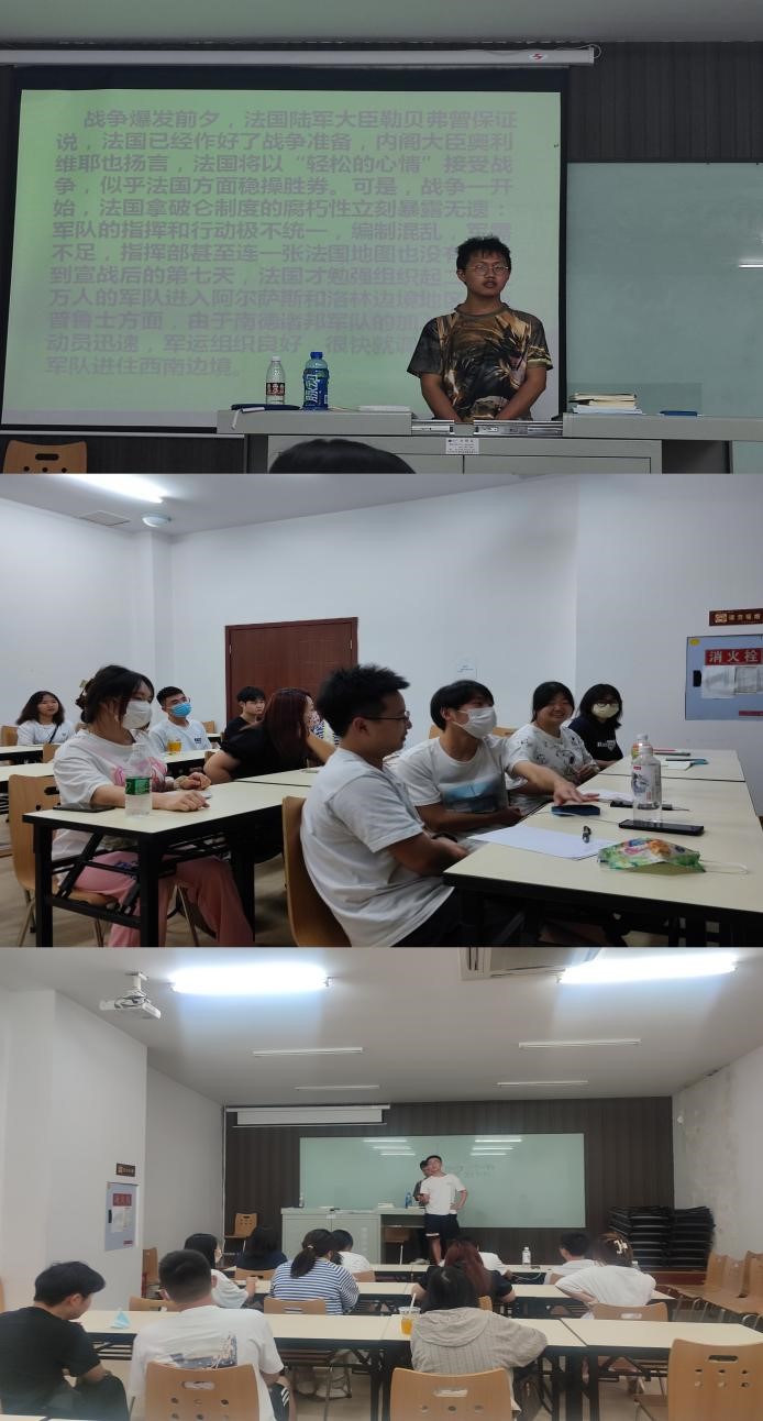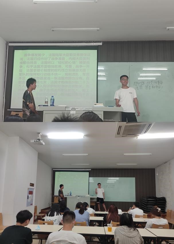 小课堂热烈进行之时,两位讲解人凭借着自己丰富的历史知识储备,旁征博引,在普法战争的主题之上讲述许多拓展人文学识。名人有言:“历史是最好的老师,他忠实记录下每一个国家走过的足迹,也给每一个国家未来的发展提供启示。”钟子强同刘仪伟同学一道口若悬河,声情并茂,将同学们以客观视角带入到19世纪,并立足于宏观角度,从微观的历史人物,历史事件等历史叙事的小切口入手,以小见大,深入探讨并进一步引发同学们独立思考。正契合刘仪伟同学在小课堂开始时所言:拓宽看待事情的角度,锻炼发散性思维和逆向思维的能力。