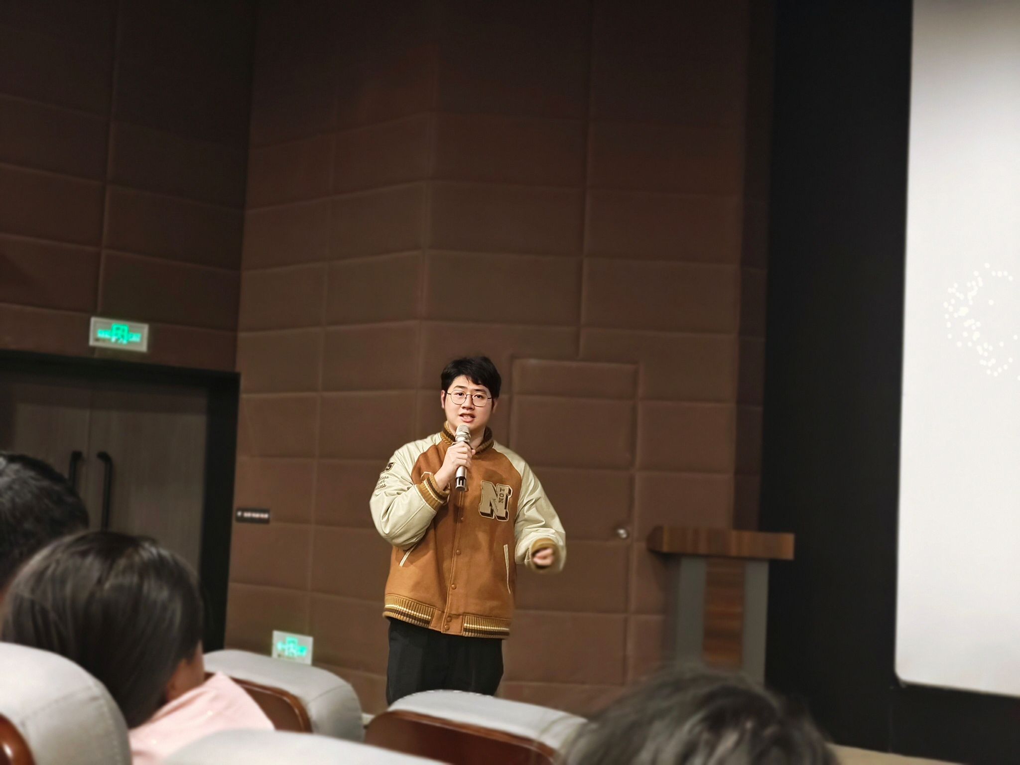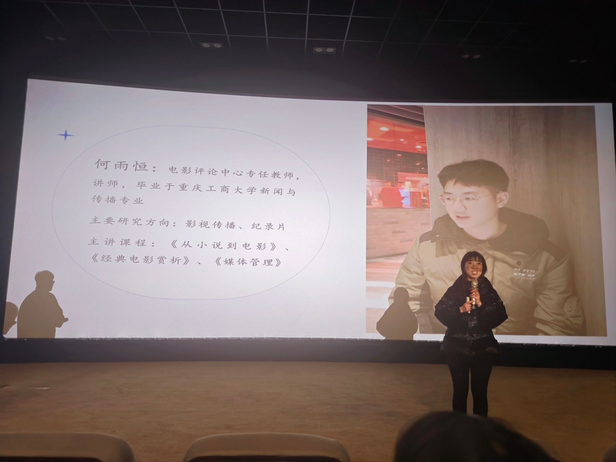 活动伊始,外国语学院英语专业教研室主任卢镜囡作为主持人向在场来宾介绍了此次活动的目的和意义,同时隆重介绍了本次活动的组织策划人:电影评论中心何雨恒老师。