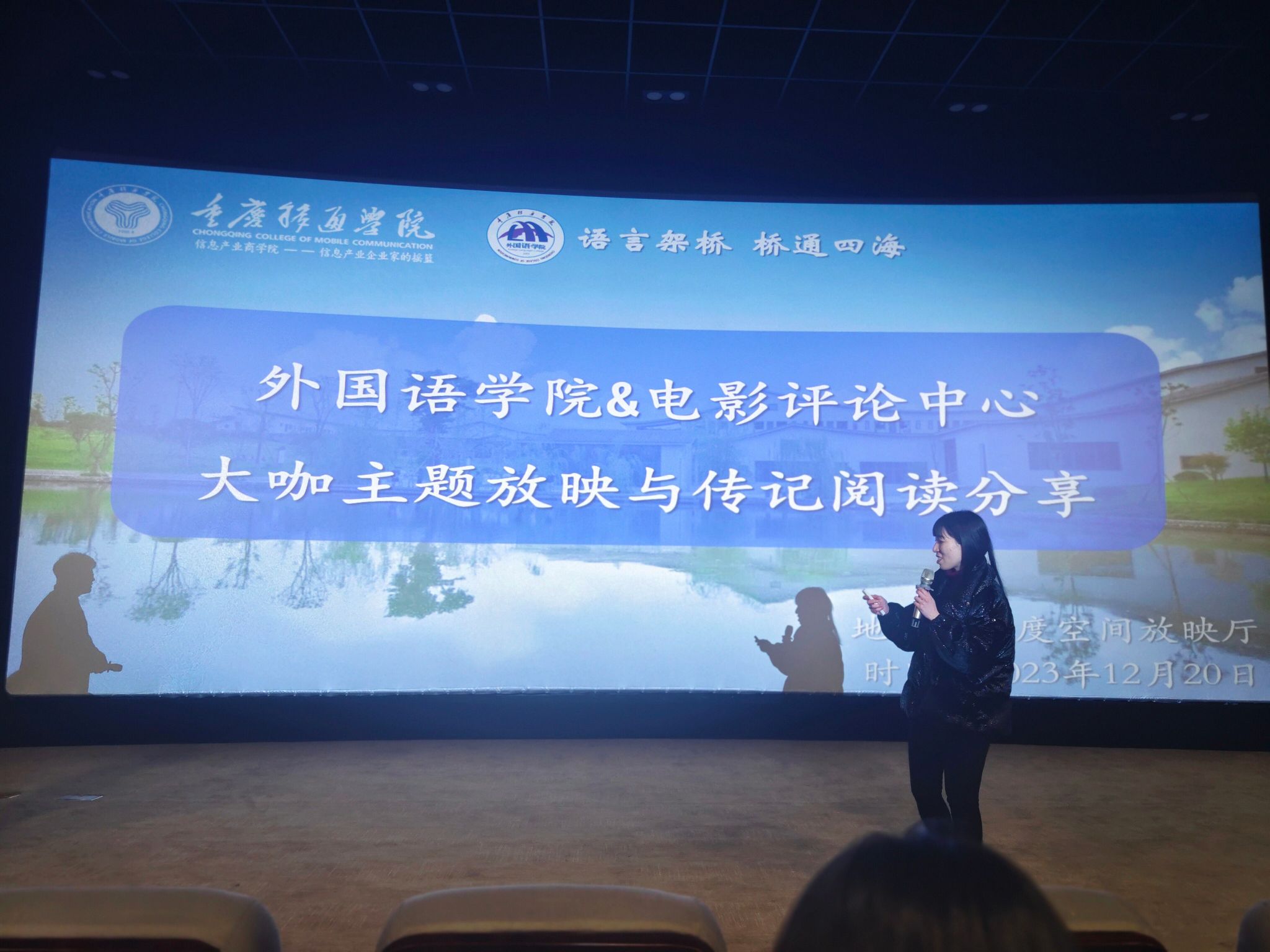 为提升学生四方面核心素养即语言能力、文化意识、思维品质和学习能力,也为了促进外国语学院与电影评论中心之间的交流融合,增进两个部门教师之间的沟通与联系,同时也为学生提供一种跨学科思维视角,让学生享受大咖传记阅读的同时通过观看大咖主题电影获得更加丰富直观的“真实语料”,12月20日,外国语学院与电影评论中心在六度空间的8又二分之一放映厅联合举办了“大咖主题放映与传记阅读分享”主题活动,从学科交叉点入手,以期寻找融合路径,探索融合方法。
