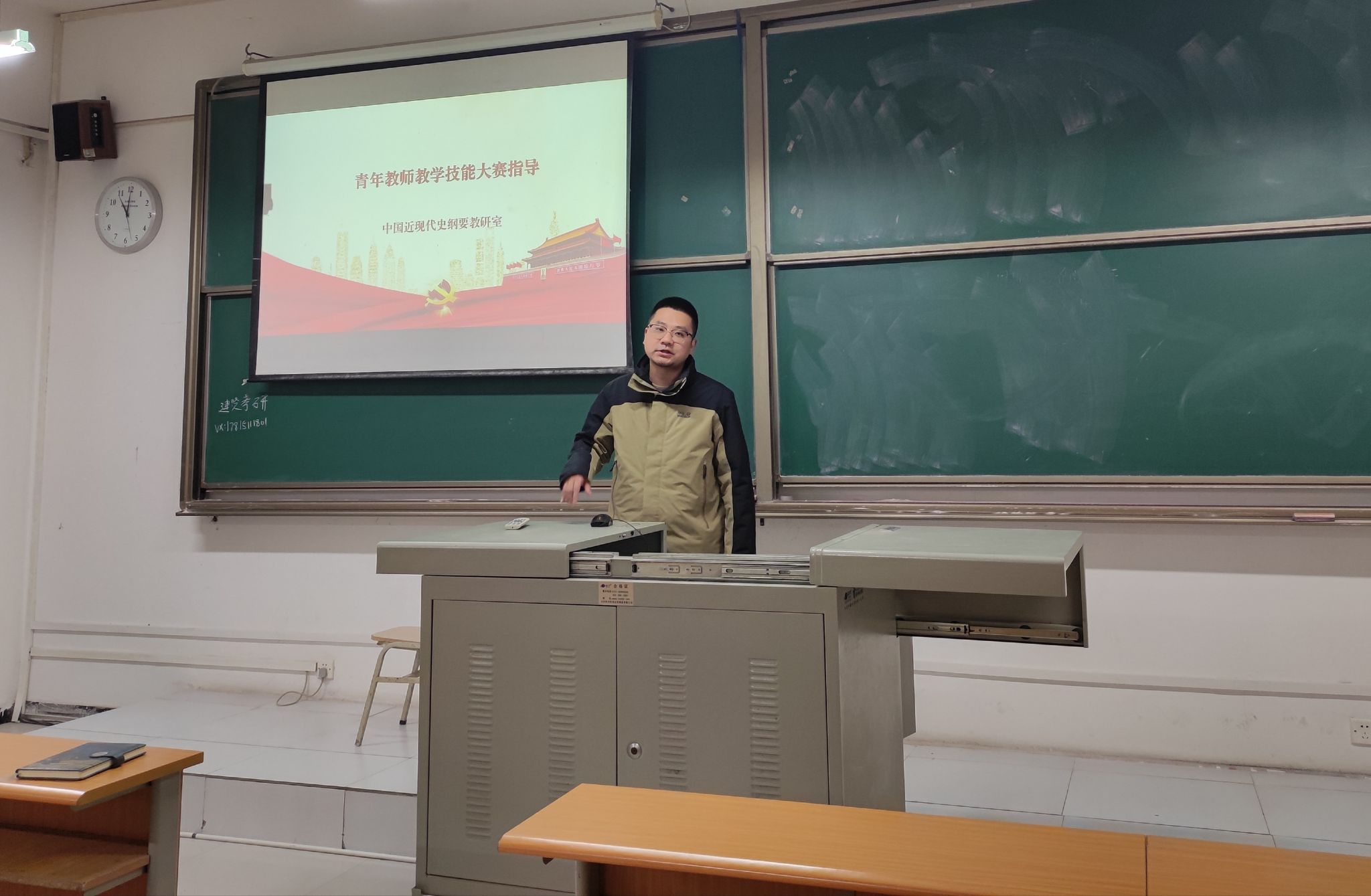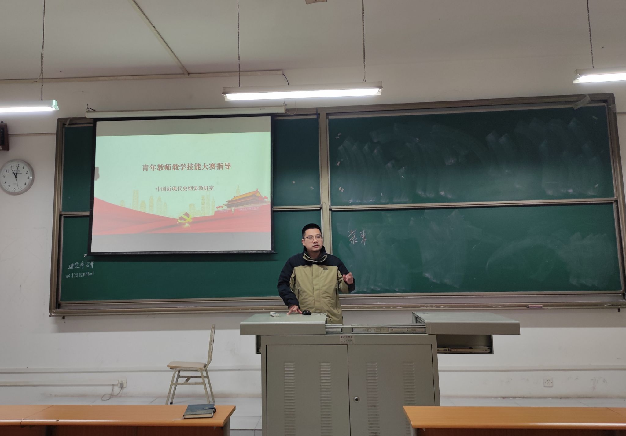 为帮助参赛青年教师提升教学技能和教学能力,以最佳状态迎接即将到来的比赛,3月13日下午4点,中国近现代史纲要教研室在1210教室开展了一场青年教师教学技能大赛赛前指导会,本次会议由教研室主任李阳老师主持,教研室全体老师参加。