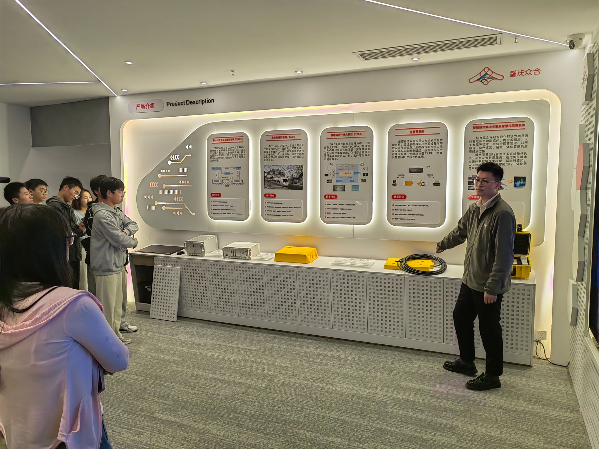 企业工程师带领学院师生参观并讲解了众合自主研发的城市轨道交通信号系统,依次介绍了轨道交通信号系统的主要组成及各子系统的工作原理,包括:联锁系统、区域控制器系统、车载系统、车地通信系统和自动监控系统信号系统,大家在了解的过程中收获颇丰。针对车载系统和联锁系统,同学们纷纷提出自己的疑问,现场交流氛围热烈。